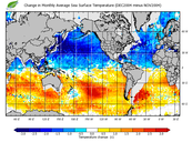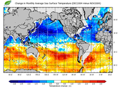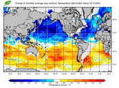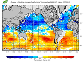 Change in monthly average sea surface temperature