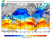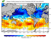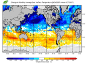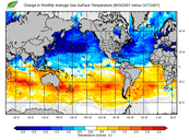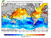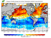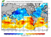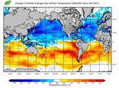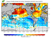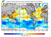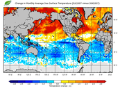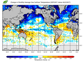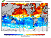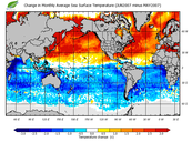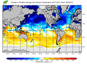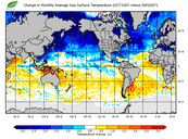 Change in monthly average sea surface temperature