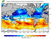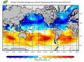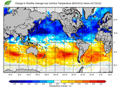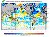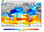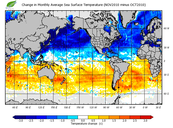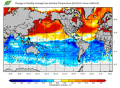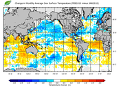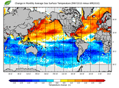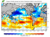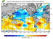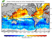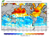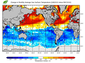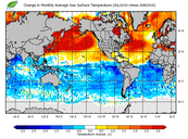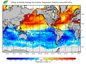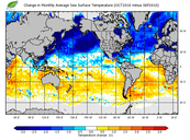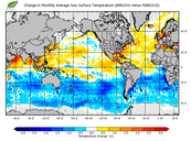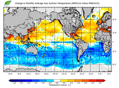 Change in monthly average sea surface temperature