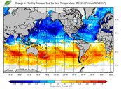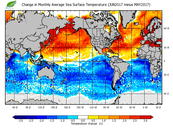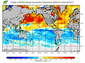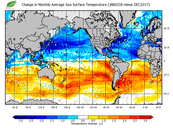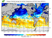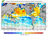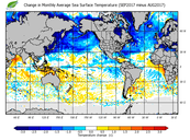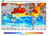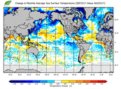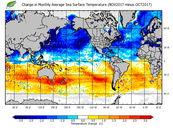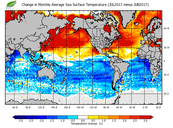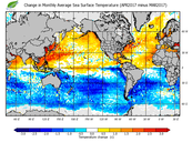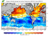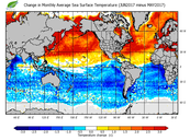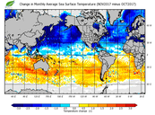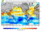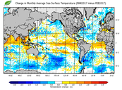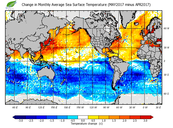 Change in monthly average sea surface temperature