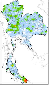 อ.เมืองฯ ต.สําราญ (ม.4) ต.โคกสี (ม.3,4,5,6,10,11) ต.บึงเนียม (ม.5,6,7) ต.ดอนหัน (ม.3,4,6,12,15)