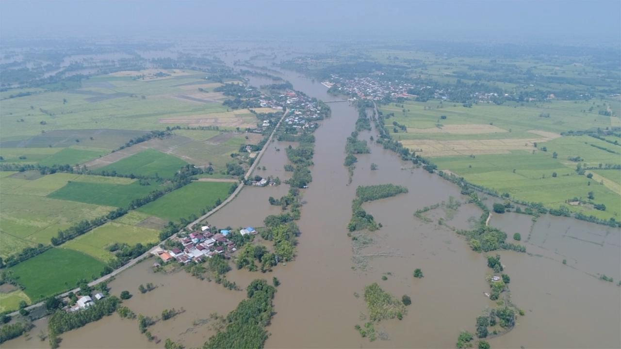 ขณะที่ ภาพจากอากาศยานไร้คนขับ ของทีมข่าวพีพีทีวี จะเห็นว่าหมู่บ้านดอนน้อย ตำบลโพนงาม อำเภอโกสุมพิสัย จังหวัดมหาสารคาม ถูกล้อมรอบด้วยปริมาณน้ำ ที่เอ่อล้นตลิ่งจากแม่น้ำชี หมู่บ้านแห่งนี้กำลังจะถูกตัดขาดจากโลกภายนอก ซึ่งตอนนี้ หากชาวบ้านต้องการเดินทางออกจากหมู่บ้าน จะต้องใช้เรือหรือรถขึ้นสูงเพียงอย่างเดียว สำหรับจุดนี้ ทีมข่าวของเราได้เข้ามารายงานสถานการณ์ไปแล้วเมื่อวาน พบว่าระดับขึ้นสูงจากเมื่อวานนี้ และมีทีท่าว่าจะสูงขึ้นอีกกว่านี้ และใกล้กับเมื่อปี2554 แล้ว