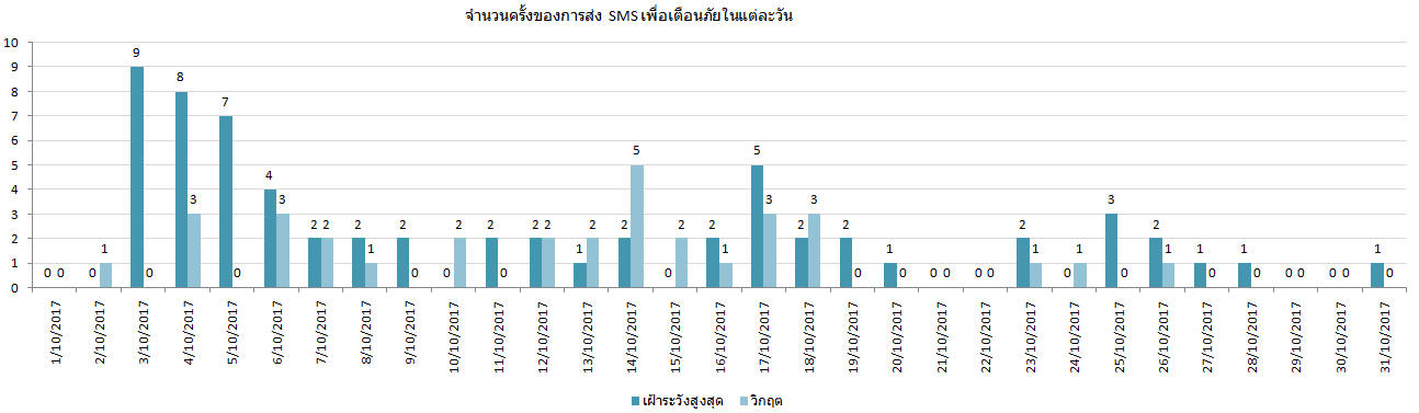 จากรายงานสถานการณ์สาธารณภัยของกรมป้องกันและบรรเทาสาธารณภัย ประจำวันที่ 31 ตุลาคม 2560 เวลา 07.00 น. ได้รายงานพื้นที่ประสบภัยจากอิทธิพลของพายุดีเปรสชัน รวมถึงการระบายนํ้าจากเขื่อนเจ้าพระยาและเขื่อนอุบลรัตน์ ในช่วงวันที่ 10 - 30 ต.ค. 60 มีพื้นที่ประสบภัยทั้งสิ้น 23 จังหวัด ได้แก่ เชียงใหม่ เลย กําแพงเพชร ตาก สุโขทัย พิจิตร นครสวรรค์ อุทัยธานี สิงห์บุรี ลพบุรี อ่างทอง พระนครศรีอยุธยา ปทุมธานี ชัยนาท เพชรบูรณ์ สุพรรณบุรี หนองบัวลําภู ขอนแก่น มหาสารคาม กาฬสินธุ์ ร้อยเอ็ด อุบลราชธานี สุราษฎร์ธานี รวม 78 อำเภอ 479 ตำบล 2,820 หมู่บ้าน 42 ชุมชน ประชาชน ได้รับผลกระทบ 125,716 ครัวเรือน 326,072 คน ผู้เสียชีวิต 10 ราย ประกอบด้วย ตาก 2 ราย พิจิตร 2 ราย สิงห์บุรี 1 ราย เลย 1 ราย ลพบุรี 1 ราย สุโขทัย 1 ราย เพชรบูรณ์ 1 ราย สุราษฎร์ธานี 1 ราย ได้รับการช่วยเหลือแล้วทั้ง 10 ราย ปัจจุบันสถานการณ์คลี่คลายแล้ว 6 จังหวัด ได้แก่ กําแพงเพชร เลย เพชรบูรณ์ สุราษฎร์ธานี เชียงใหม่ ตาก และยังคงมีสถานการณ์ 17 จังหวัด ได้แก่ สุโขทัย พิจิตร นครสวรรค์ อุทัยธานี สิงห์บุรี ลพบุรี อ่างทอง พระนครศรีอยุธยา ปทุมธานี ชัยนาท สุพรรณบุรี หนองบัวลําภู ขอนแก่น มหาสารคาม กาฬสินธุ์ ร้อยเอ็ด อุบลราชธานี รวม 57 อำเภอ 390 ตำบล 2,154 หมู่บ้าน 110,627 ครัวเรือน 291,373 คน อพยพ 20 ครัวเรือน