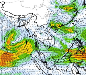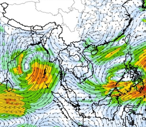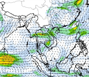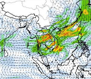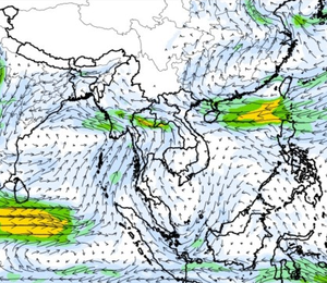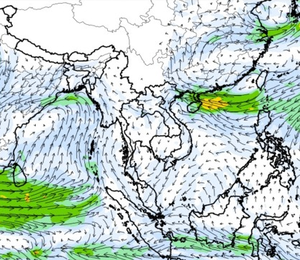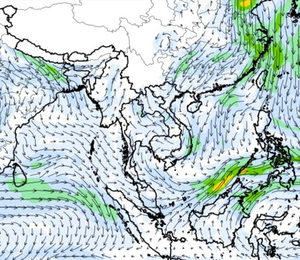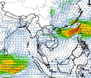 ภาพแผนที่แสดงความเร็วลมที่ระดับความสูง 1.5 กิโลเมตร จากระดับน้ำทะเล แสดงให้เห็นว่าช่วงวันที่ 9-10 ต.ค. 60 บริเวณที่เกิดพายุดีเปรสชั่น 02 ลมค่อนข้างแรง ความเร็วลมสูงสุดอยู่ที่ประมาณ 70-80 กิโลเมตรต่อชั่วโมง และในช่วงกลางเดือนพายุไต้ฝุ่นขนุนได้เคลื่อนตัวจากทะเลจีนใต้เข้าสู่อ่าวตังเกี๋ยในช่วงวันที่ 16 ต.ค. 60 ความเร็วลมสูงสุดมากกว่า 150 กิโลเมตรต่อชั่วโมง ซึ่งอิทธิพลของพายุลูกนี้ ส่งผลให้ปริมาณฝนในพื้นที่ตอนบนของประเทศไทยเพิ่มขึ้นด้วยเช่นกัน ทั้งนี้ตั้งแต่ช่วงต้นเดือนจนถึงกลางเดือนมีลม มรสุมตะวันตกเฉียงใต้พัดปกคลุมทะเลอันดามัน ประเทศไทย และอ่าวไทยอย่างต่อเนื่อง จนถึงในช่วงกลางเดือนลักษณะของลมได้เปลี่ยนเป็นลมมรสุมตะวันออกเฉียงเหนือ ซึ่งพัดลมหนาวลงมาจากประเทศจีน ส่งผลทำให้ตอนบนของประเทศมีฝนลดลง