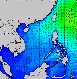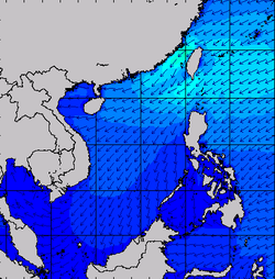 แผนภาพแสดงความสูงของคลื่นและทิศทางของคลื่นแสดงให้เห็นว่าตลอดทั้งเดือนตุลาคม 2560 ความสูงของคลื่นบริเวณอ่าวไทย อยู่ที่ประมาณ 1-2 เมตร ตลอดทั้งเดือน โดยในช่วงวันที่ 14-15 ต.ค. 60 ความสูงของคลื่นเพิ่มขึ้นเล็กน้อยจากอิทธิพลของพายุขนุน หลังจากนั้นความสูงของคลื่นได้ลดต่ำลง และในช่วงวันที่ 30-31 ต.ค. 60 คลื่นได้เพิ่มสูงขึ้นเล็กน้อยอีกครั้งจากอิทธิพลของพายุดีเปรสชันบริเวณปลายแหลมยวน