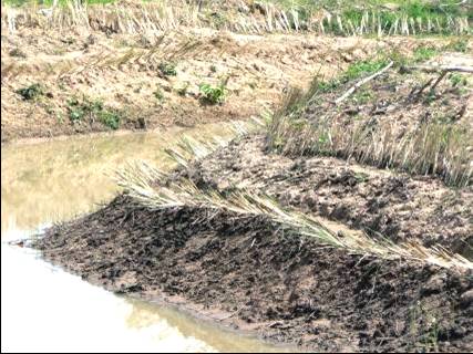 โครงการปรับปรุงทางน้ำ อบต.คุ้มเก่า มีการขุดลอก และปลูกแฝกริมตลิ่ง สังเกตพบสิ่งปฏิกูลขวางทางไหลของน้ำชบริเวณตอหม้อสะพาน และขาดการปลูกไม้ยืนต้นเพื่อเป็นแนวกันลมตามลำน้ำ