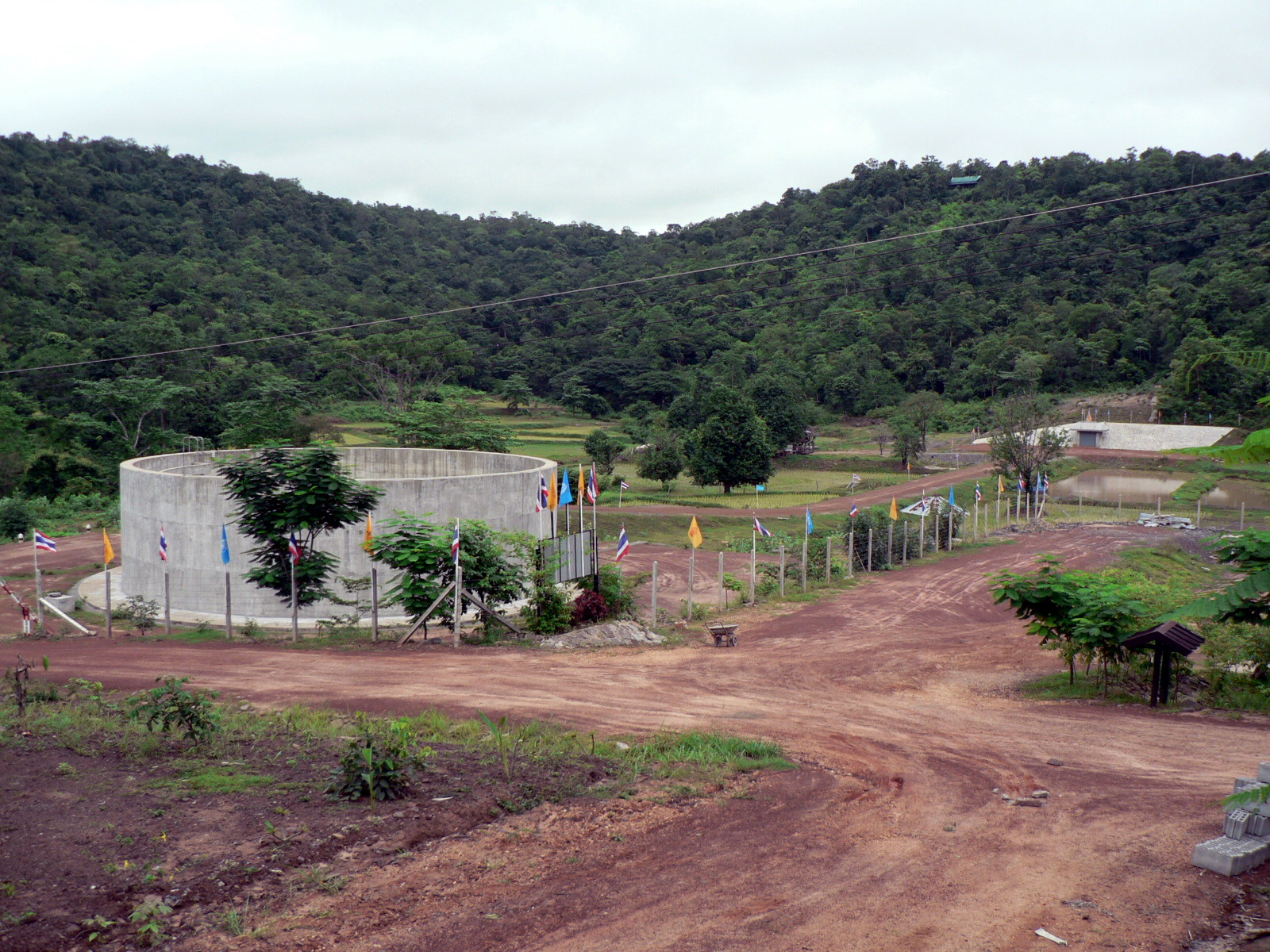 และถนนตัดตามแนวขอบอ่างเก็บน้ำด้านทิศตะวันตกของอ่าง