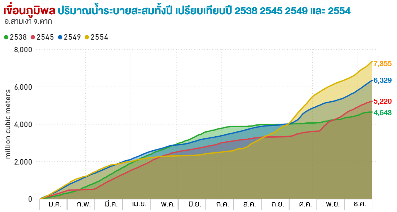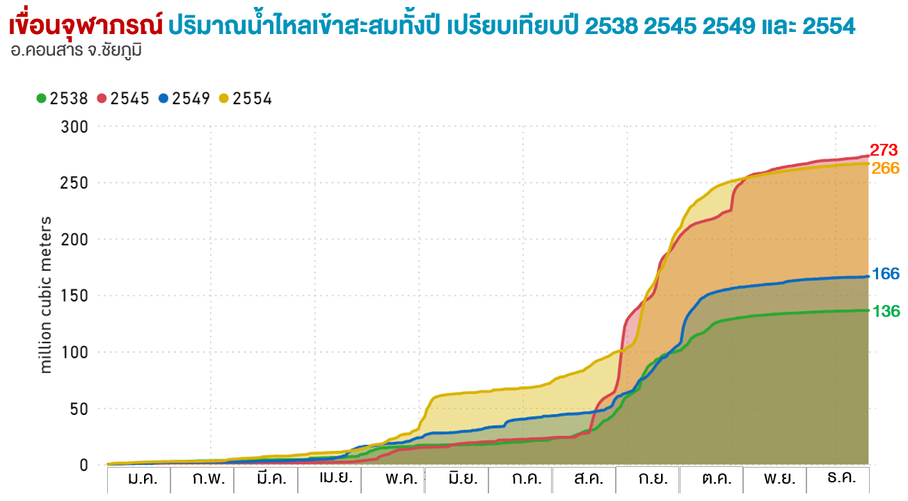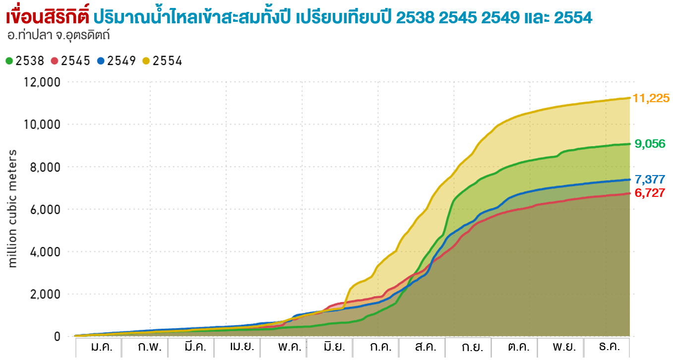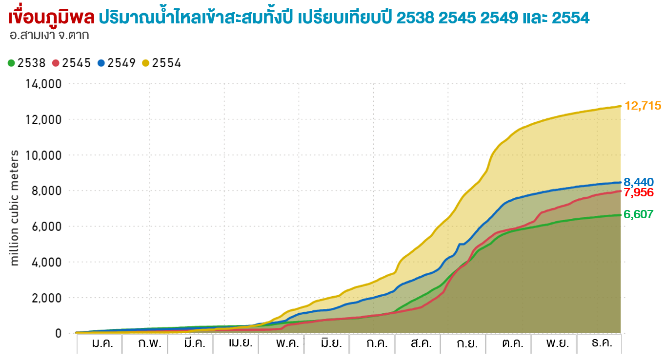 ปริมาณน้ำไหลสะสมทั้งปี (ล้าน ลบ.ม.) |
