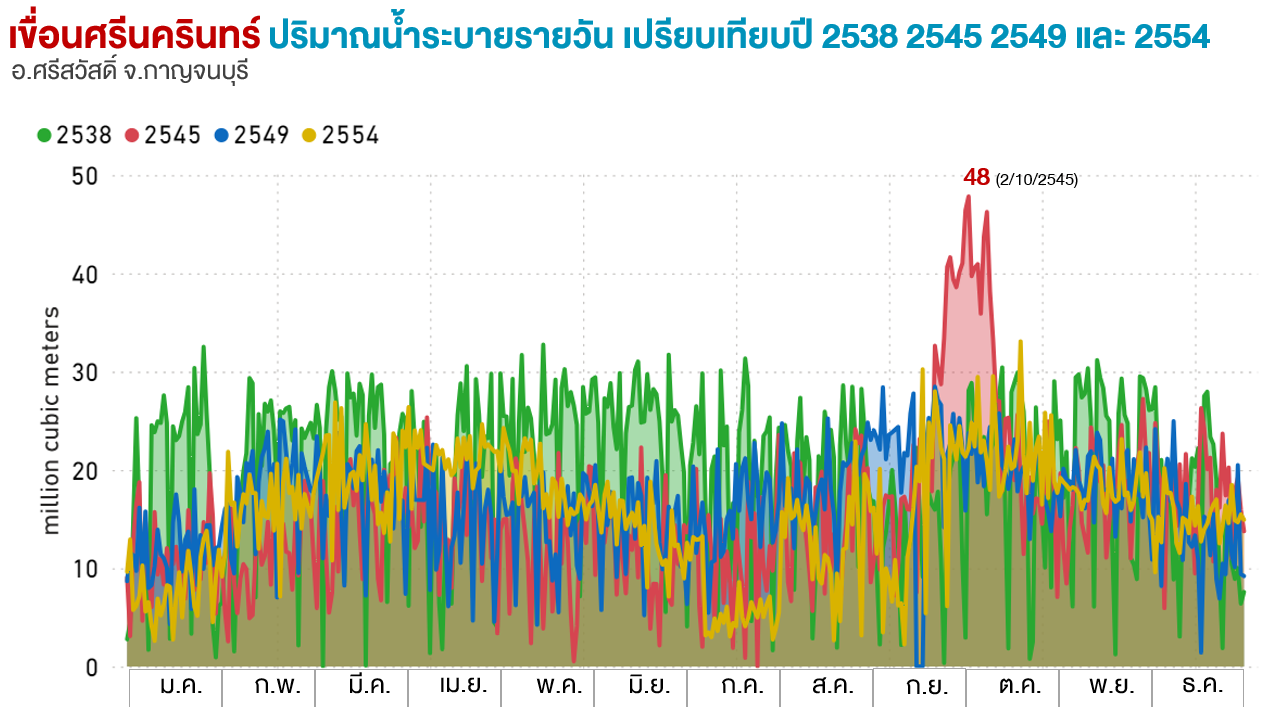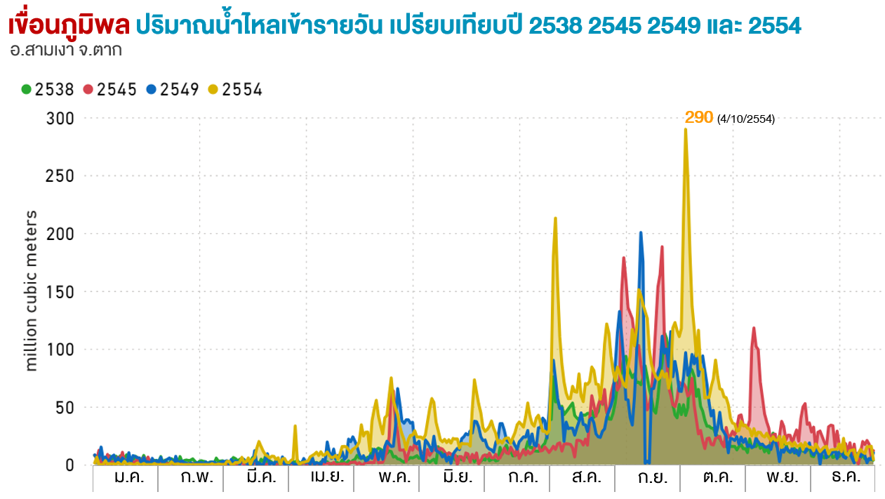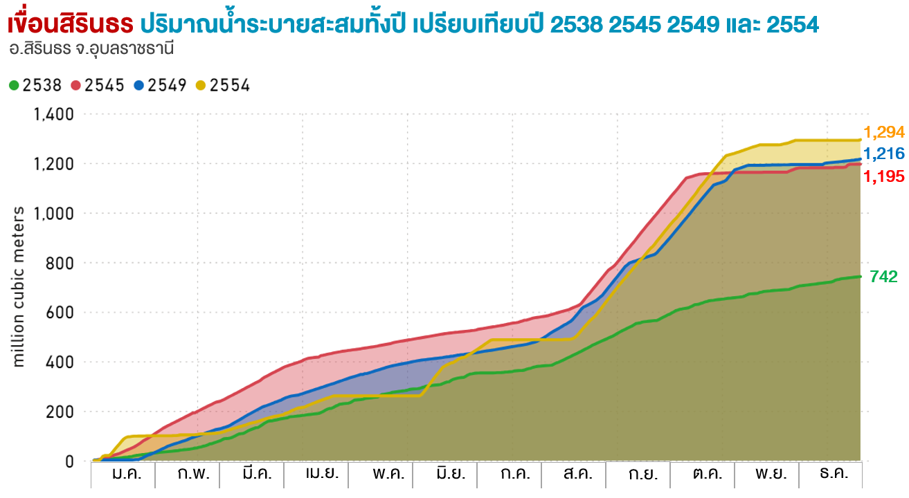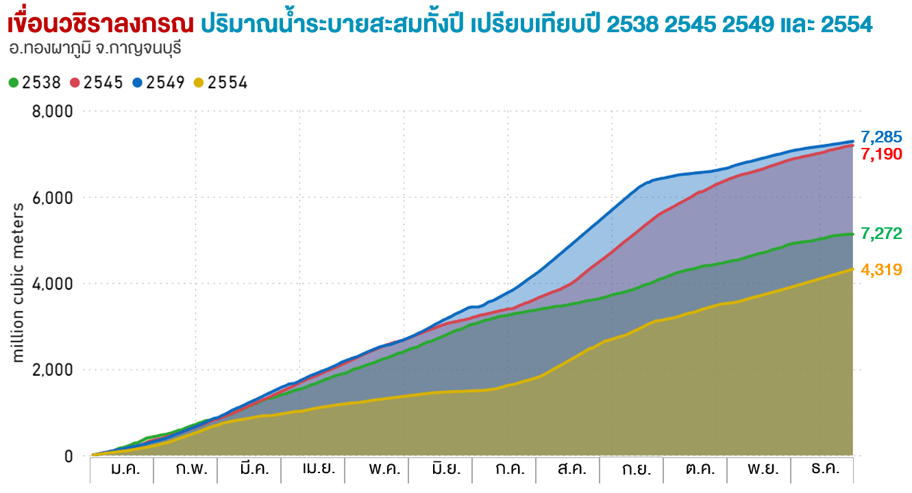 ปริมาณน้ำไหลสะสมทั้งปี (ล้าน ลบ.ม.) |