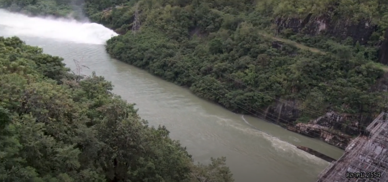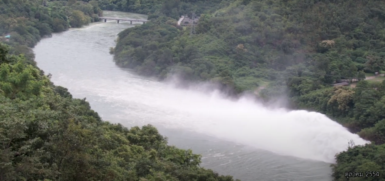 spillway เกิดขึ้นบ่อยครั้งนัก ซึ่งเหตุการณ์น้ำท่วมรุนแรงครั้งนี้ เขื่อนภูมิพลเปิดการระบายผ่าน spillway 2 ช่วง ช่วงแรกระหว่างวันที่ 5-13 ตุลาคม 2554 ช่วงที่ 2 ระหว่างวันที่ 18-20 ตุลาคม 2554 รวมทั้งหมด 12 วัน ปริมาณน้ำระบายผ่าน