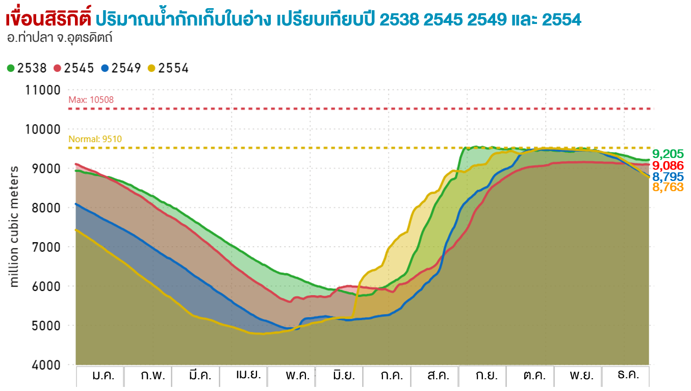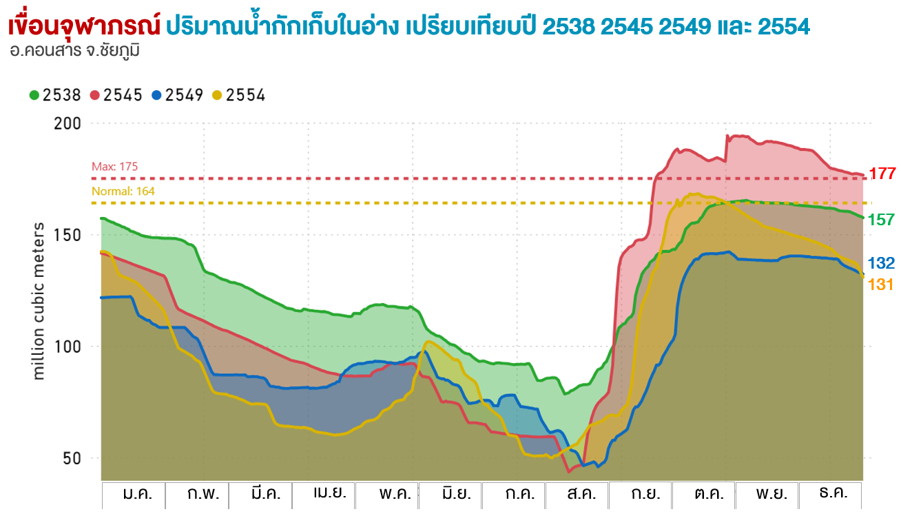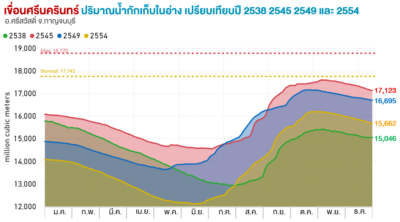 ปริมาณน้ำกักเก็บ (ล้าน ลบ.ม.) |