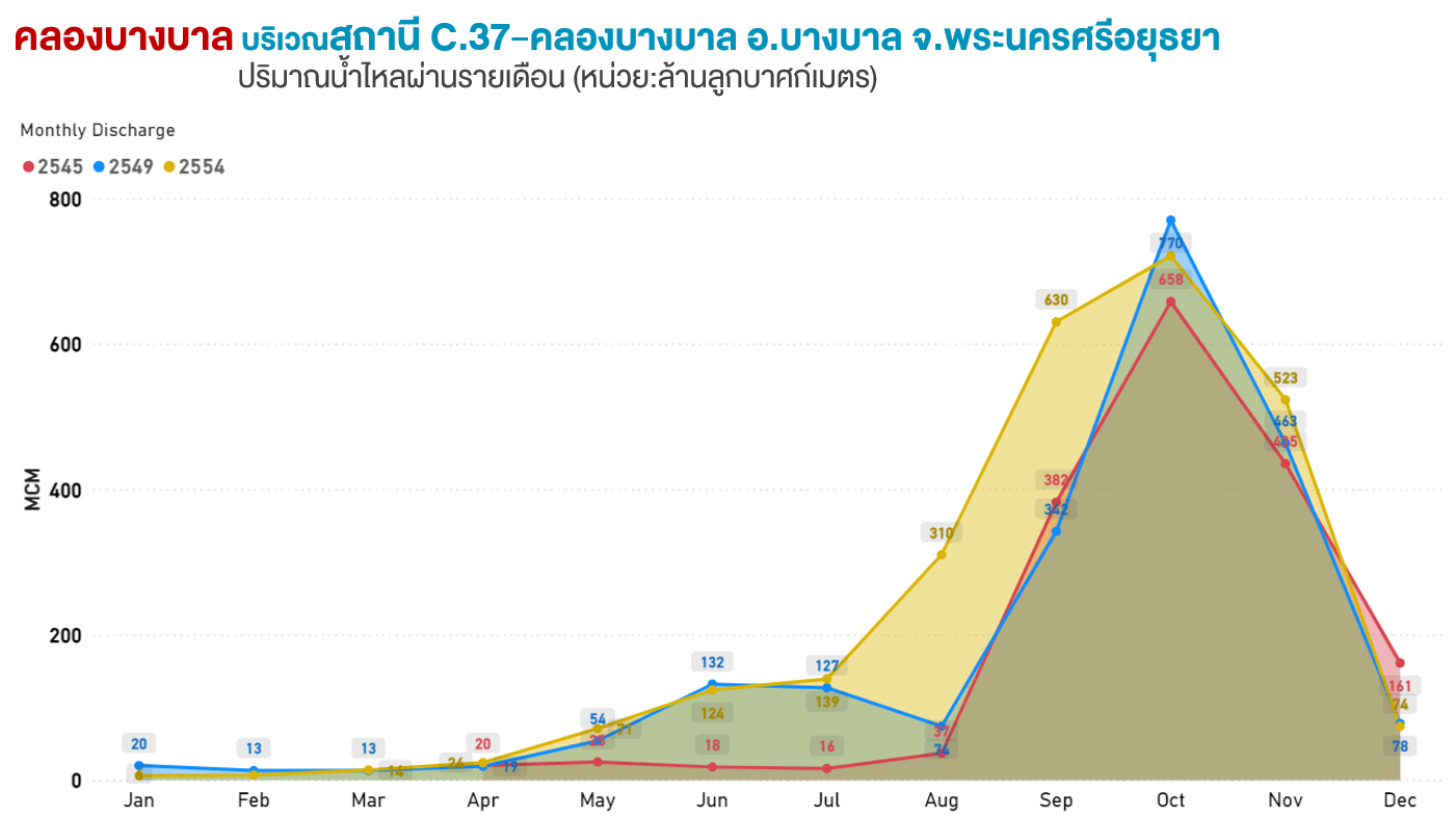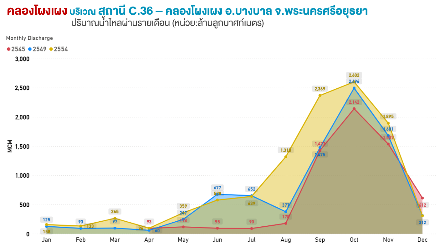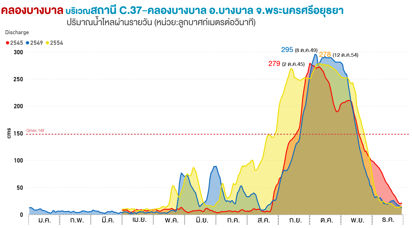 พฤศจิกายน 2554 ส่งผลทำให้มีปริมาณน้ำไหลผ่านรวมทั้งปีสูงถึง 35,400 ซึ่งมากกว่าปี 2538 2545 2549 ที่เกิดอุทกภัยร้ายแรงครั้งใหญ่ในลุ่มน้ำเจ้าพระยา