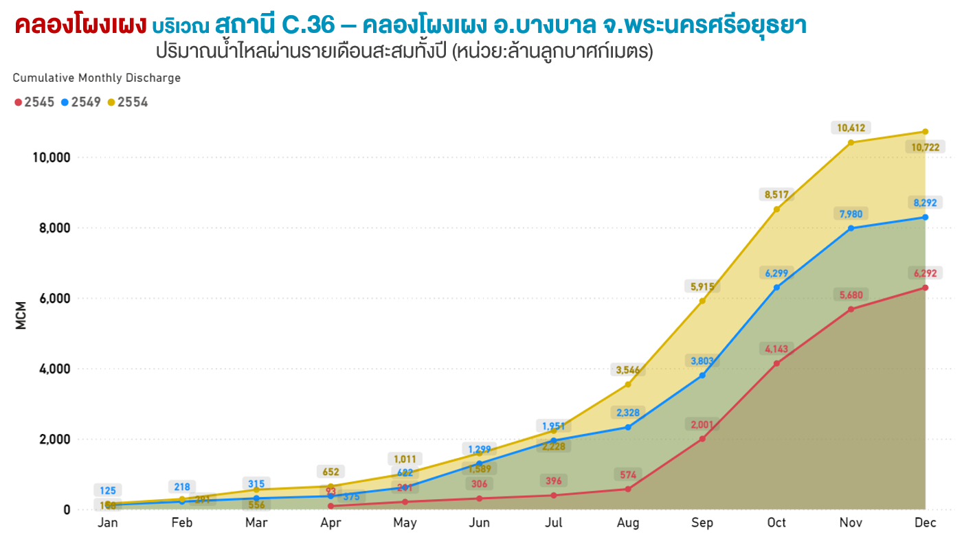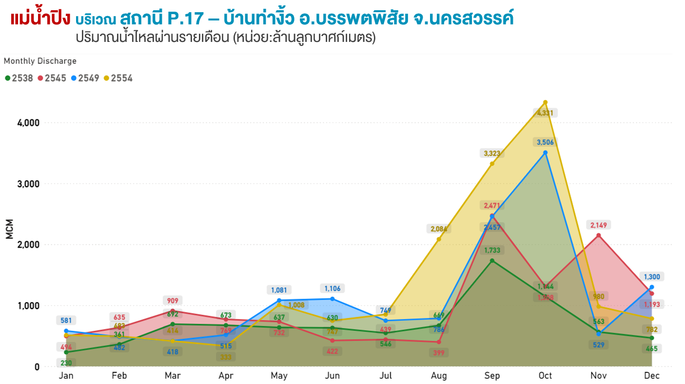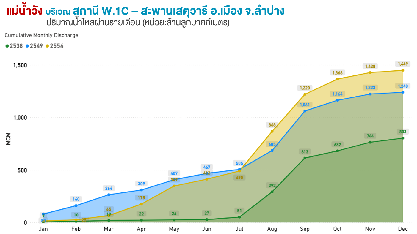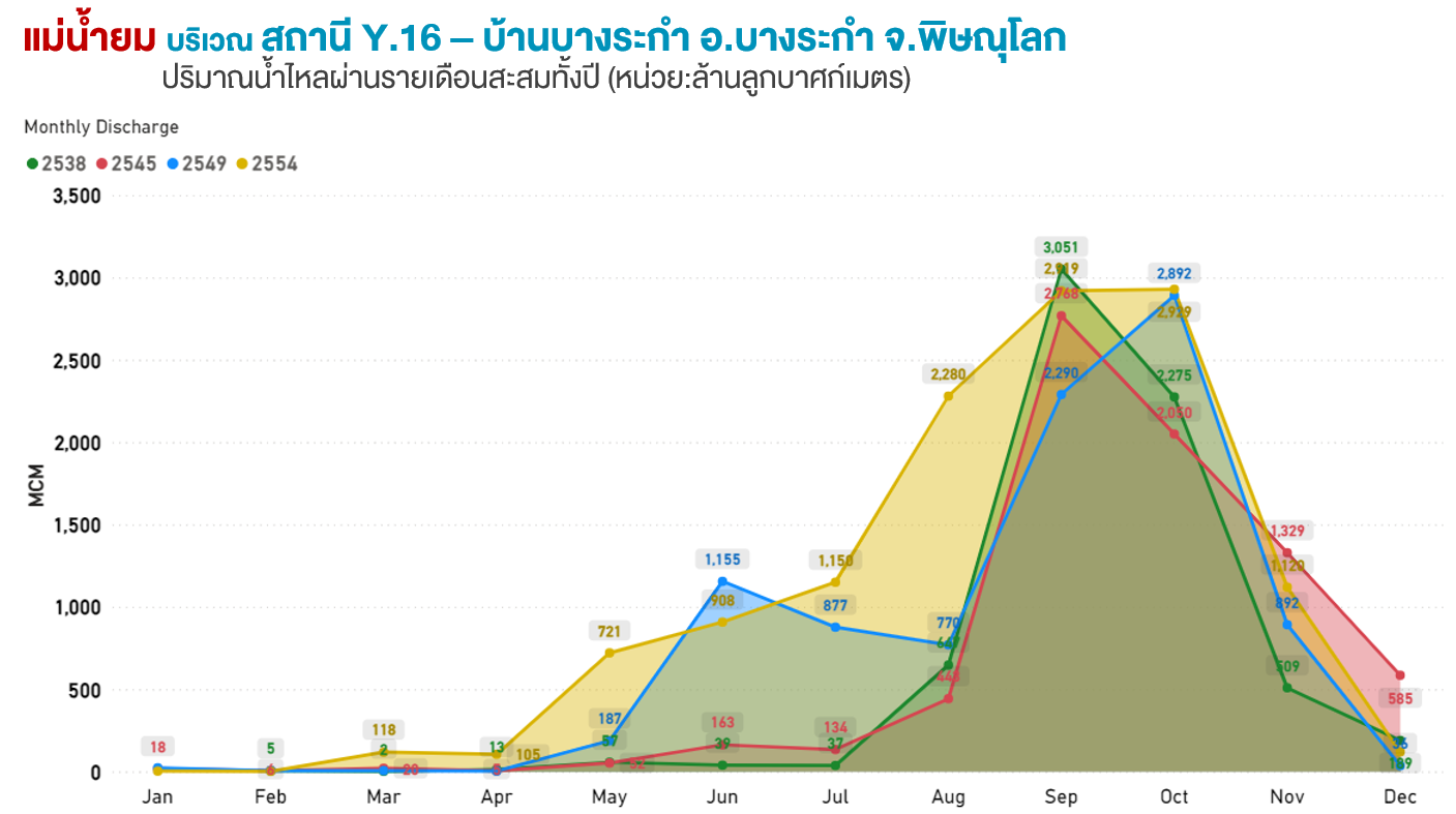 ได้ชัด ทำให้มีปริมาณน้ำสะสมทั้งปีสูงถึง 15,586 ล้านลูกบาศก์เมตร ซึ่งมากที่สุดเมื่อเทียบกับปี 2538 3545 และ 2549 ที่ลุ่มน้ำเจ้าพระยาเกิดอุทกภัยรุนแรง