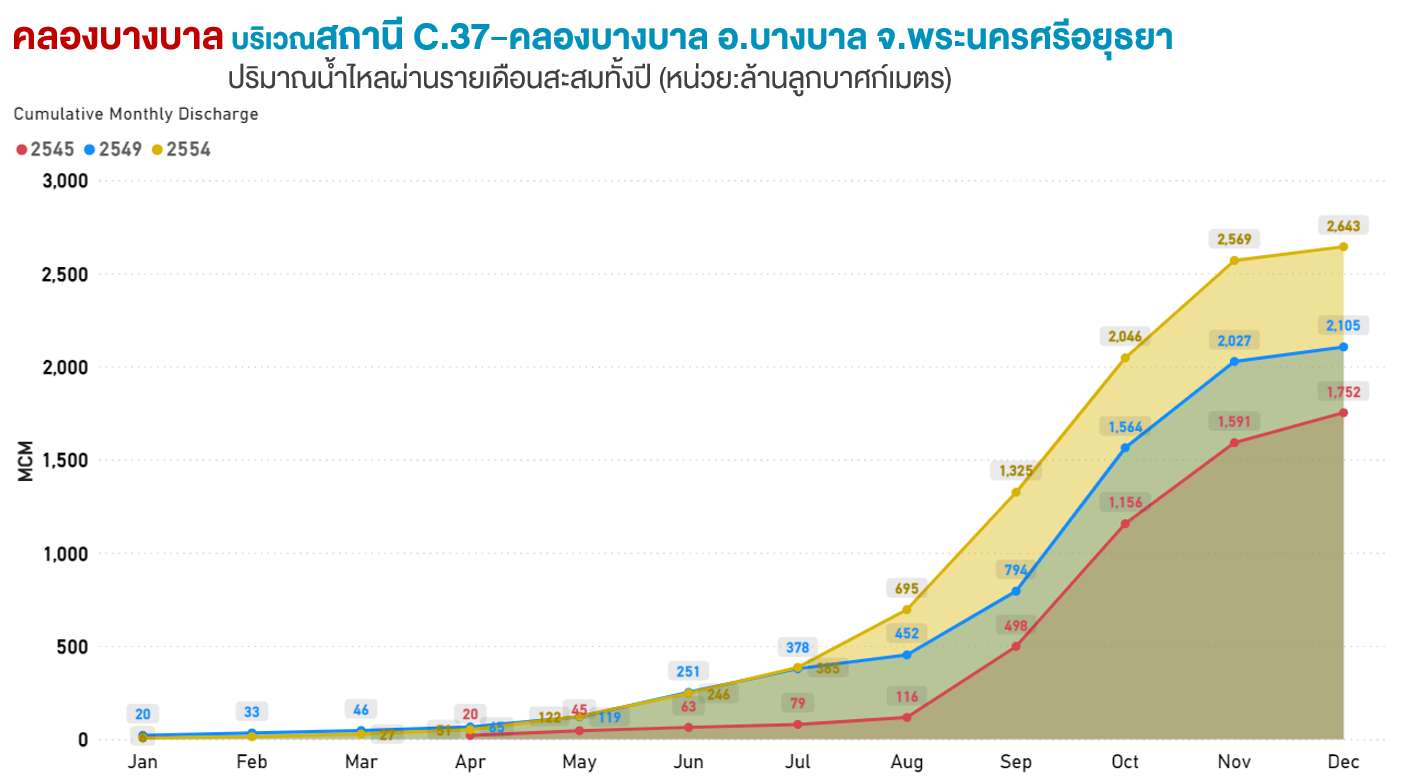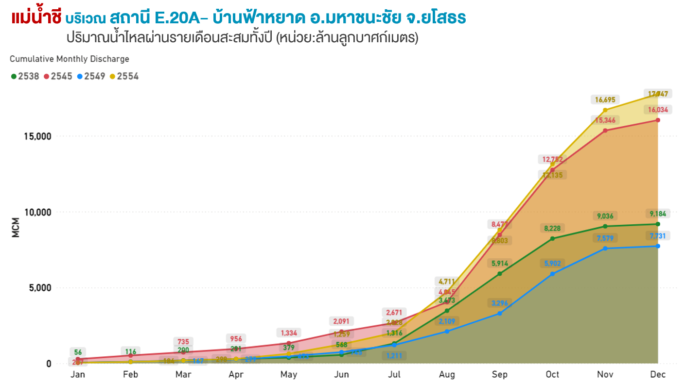 รวมทั้งปีมากถึง 17,747 ล้านลูกบาศ์เมตร มากกว่าปี 2545 อยู่เล็กน้อย แต่มากกว่าปี 2538 และ 2549 ค่อนข้างมากเป็นเท่าตัว