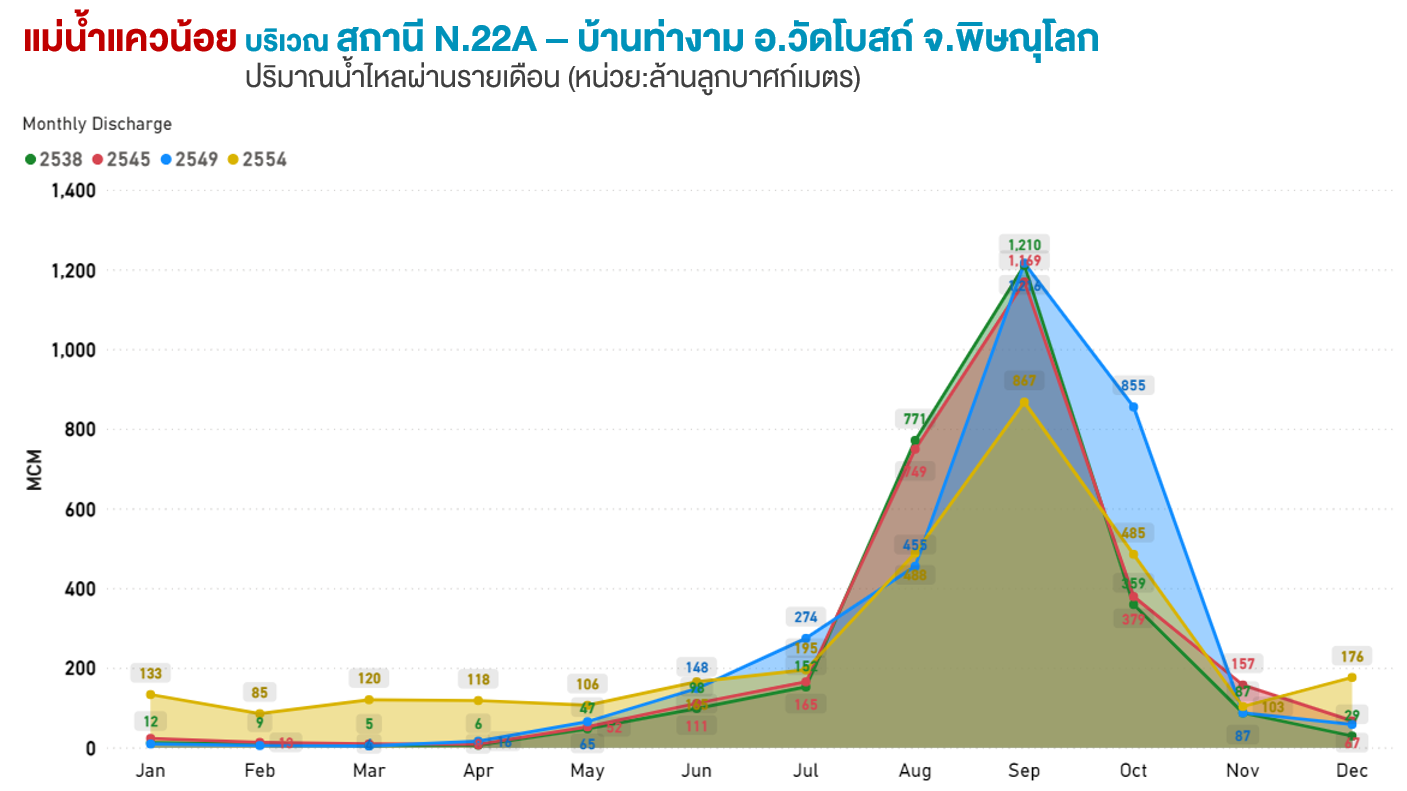 จากการตรวจวัดปริมาณน้ำบริเวณบ้านท่างาม อ.วัดโบถส์ จ.พิษณุโลก ซึ่งเป็นบริเวณปลายน้ำของแม่น้ำแควน้อยก่อนบรรจบกับ