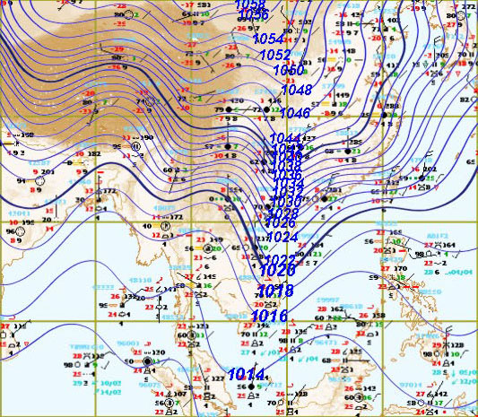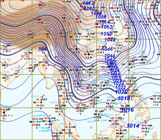 จากภาพแผนที่อากาศโดยมกรมอุตุนิยมวิทยา พบว่าความกดอากาศสูงกำลังแรงได้แผ่ลงมาปกคลุมบริเวณภาคตะวันออกเฉียงเหนือตั้งแต่วันที่ 23 มกราคม 2559 และแผ่