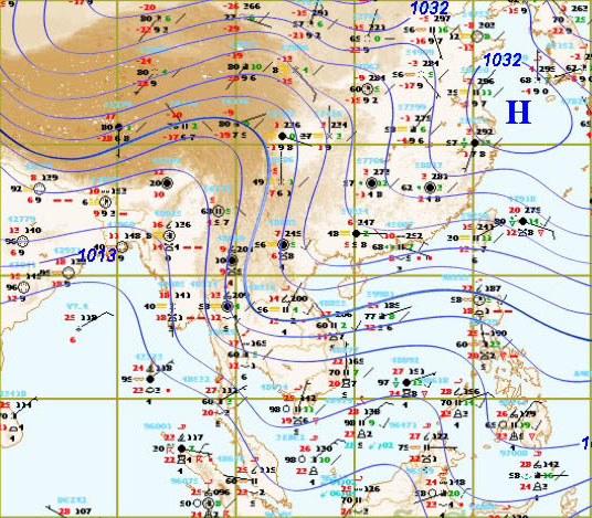 เมื่อวันที่ 25 ม.ค. กรมอุตุนิยมวิทยารายงานลักษณะอากาศทั่วไป บริเวณความกดอากาศสูงกำลังแรงจากประเทศจีนแผ่ลงมาปกคลุมถึงบริเวณประเทศไทยตอนบน ลักษณะเช่นนี้ทำให้บริเวณดังกล่าวจะมีอากาศแปรปรวน โดยมีฝนฟ้าคะนองกับมีลมแรงเกิดขึ้น และอากาศจะหนาวเย็นลงอย่างรวดเร็ว และอุณหภูมิจะลดลงอีก 2-4 องศาเซลเซียส