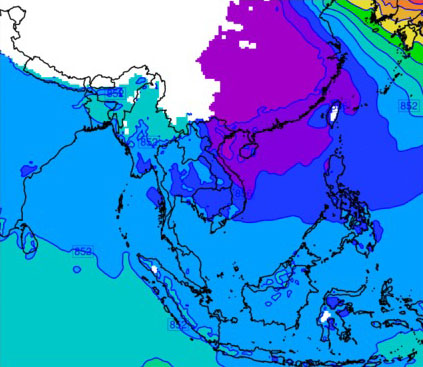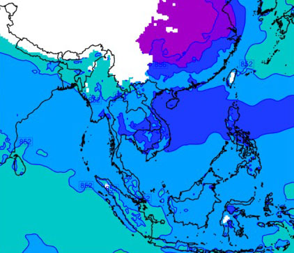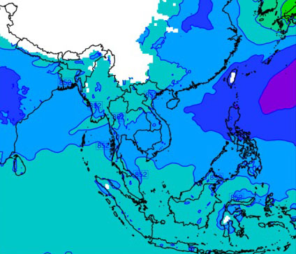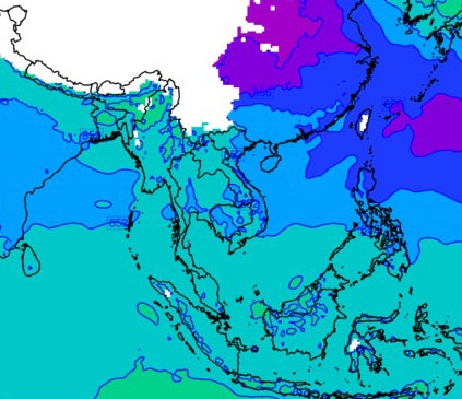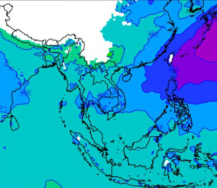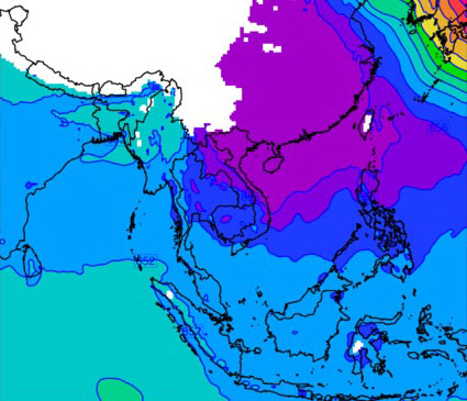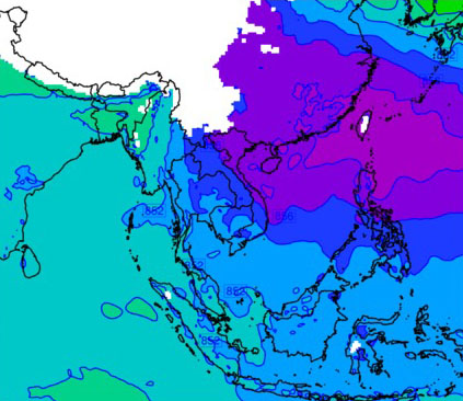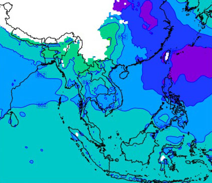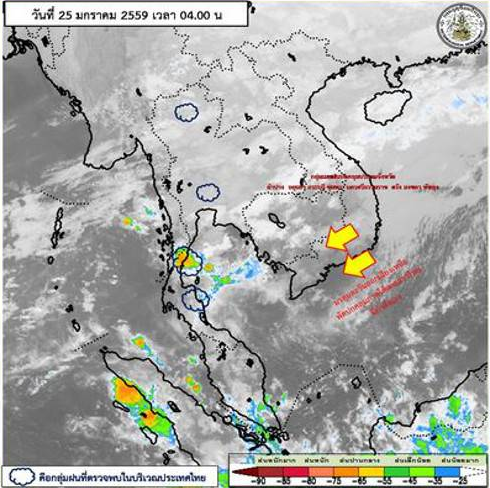 สำหรับมรสุมตะวันออกเฉียงเหนือที่พัดปกคลุมภาคใต้และอ่าวไทยจะมีกำลังแรง ทำให้บริเวณภาคใต้มีฝนเพิ่มขึ้นและมีฝนตกหนักบางแห่ง ส่วนบริเวณอ่าวไทยจะมีคลื่นสูง 2-4 เมตร ขอให้ประชาชนที่อาศัยบริเวณชายฝั่งระวังอันตรายจากคลื่นลมแรงที่ซัดเข้าหาฝั่ง ส่วนชาวเรือเดินเรือด้วยความระมัดระวัง และเรือเล็กควรงดออกจากฝั่งในช่วงวันที่ 25-27 ม.ค. 59 ไว้ด้วย