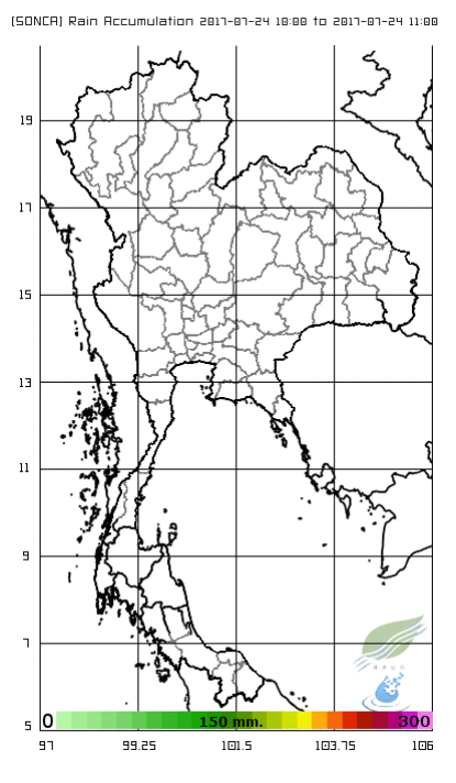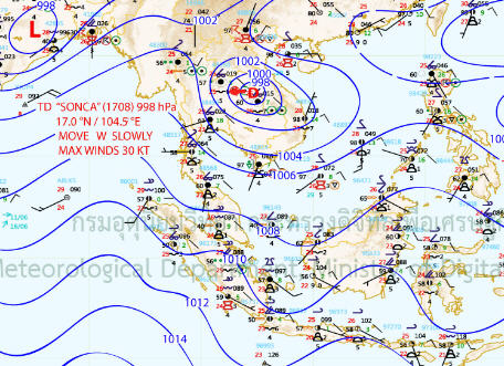 จากภาพแผนที่อากาศ จะเห็นได้ว่าในวันที่ 24 ก.ค. 60 พายุโซนร้อน "เซินกา" (SONCA) ได้เคลื่อนตัวอยู่บริเวณทะเลจีนใต้ตอนบน และหลังจากนั้นได้เคลื่อนเข้าสู่ทางภาคตะวันออกเฉียงเหนือของประเทศไทย วันที่ 25 ก.ค. 60 และสลายตัวเป็นหย่อมความกดอากาศต่ำในวันที่ 26 ก.ค. 60 ส่งผลให้เกิดฝนตกหนักในหลายพื้นที่ของภาคตะวันออกเฉียงเหนือและภาคเหนือ โดยเฉพาะจังหวัดสกลนคร อุดรธานี มุกดาหาร นครพนม กาฬสินธุ์ อำนาจเจริญ มหาสารคาม ร้อยเอ็ด ชัยภูมิ เพชรบูรณ์ ขอนแก่น ยโสธร นครราชสีมา สุรินทร์ และอุบลราชธานี
