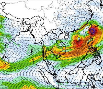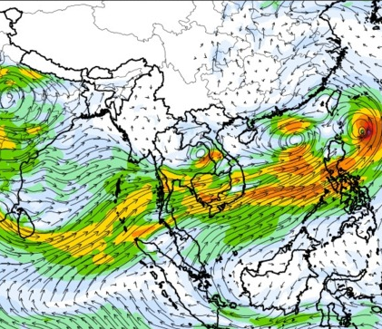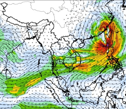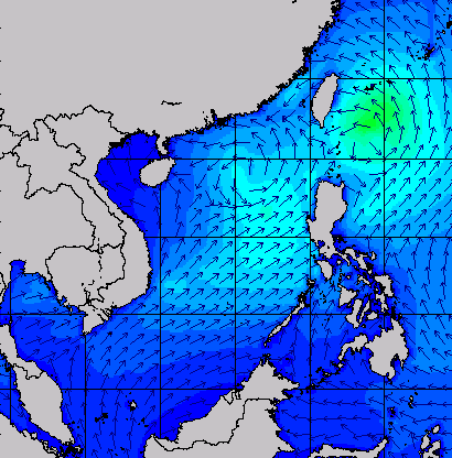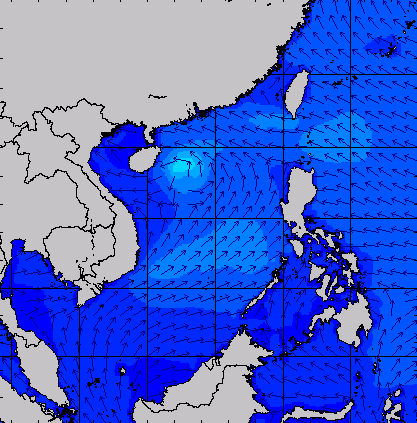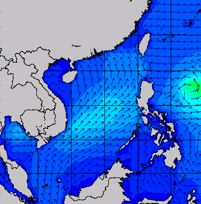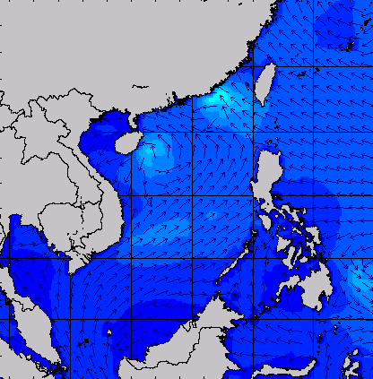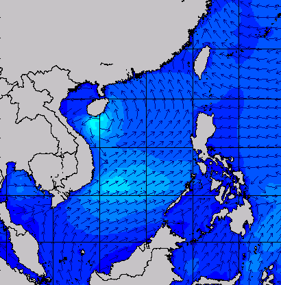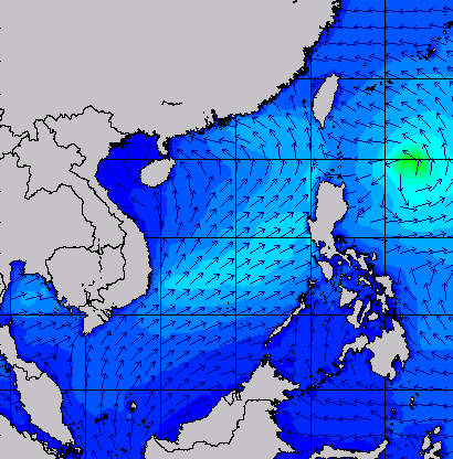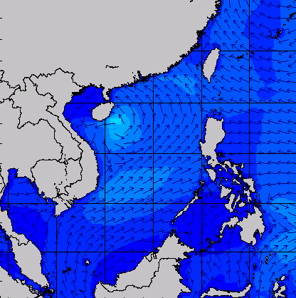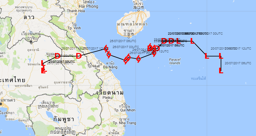 แผนภาพแสดงความสูงของคลื่นและทิศทางของคลื่นแสดงให้เห็นว่า จากอิทธิพลของพายุโซนร้อน "เซินกา" (SONCA) ส่งผลให้ความสูงของคลื่นบริเวณทะเลจีนใต้ เพิ่มขึ้นเป็น 2-3 เมตร ในช่วงวันที่ 21-24 ก.ค. 60 หลังจากนั้นความสูงของคลื่นที่ได้ลดลงเหลือ 1 เมตร เนื่องจากพายุ "เซินกา" ได้เคลื่อนขึ้นฝั่งในวันที่ 25 ก.ค. 60 ส่วนความสูงของคลื่นที่เพิ่มขึ้นมากในช่วงวันที่ 25-28 ก.ค. 60 เนื่องจากได้รับอิทธิพลจากพายุโซนร้อน "ไห่ถาง" (HAITANG) บริเวณทะเลจีนใต้ตอนบน และพายุไต้ฝุ่น "เนสาด" (NESAT) ทางด้านตะวันออกของประเทศฟิลิปปินส์