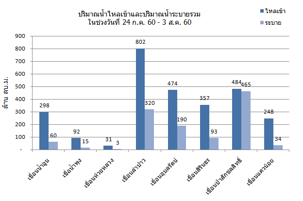ปริมาณน้ำไหลลงอ่างเก็บน้ำ เขื่อนป่าสักชลสิทธิ์![]() |