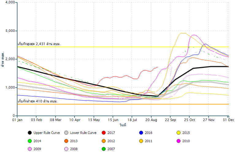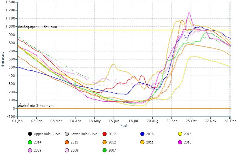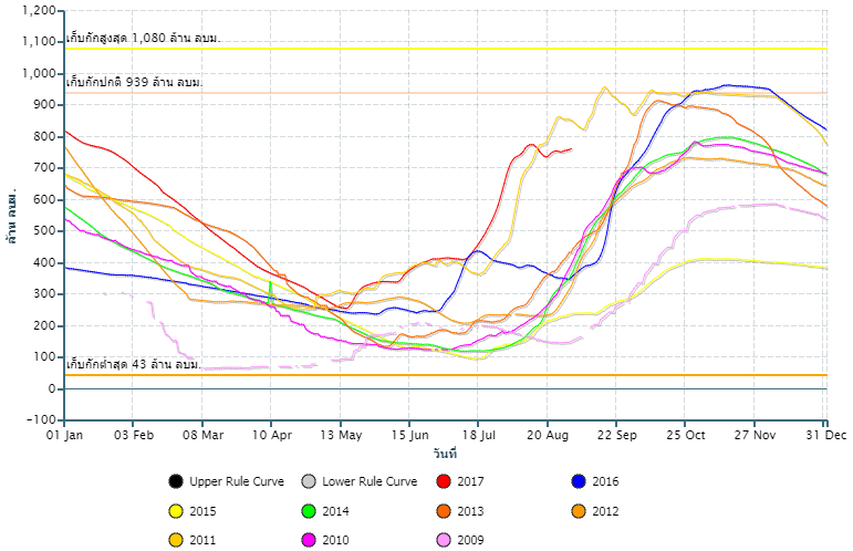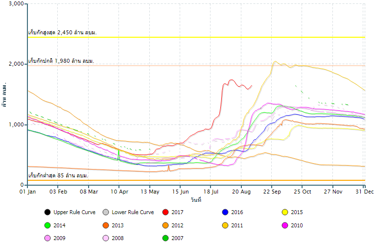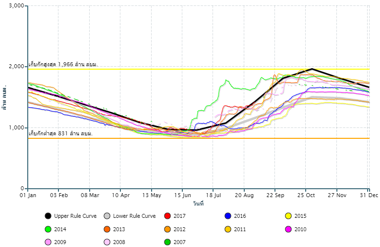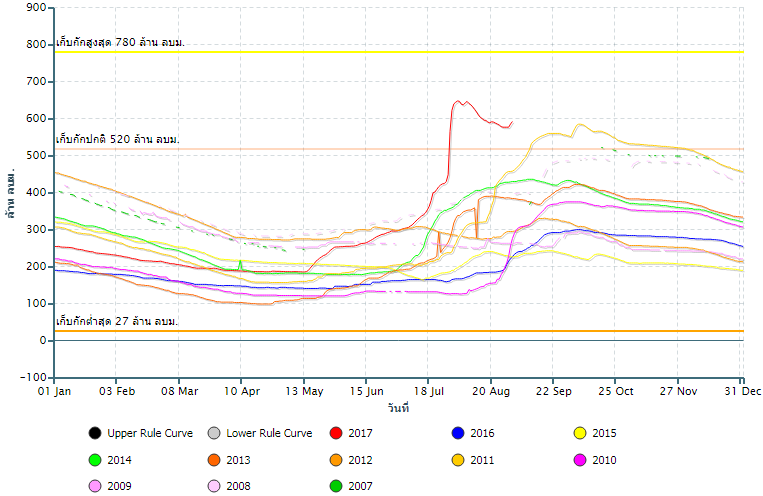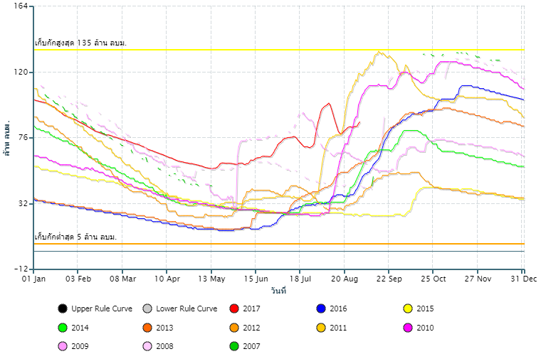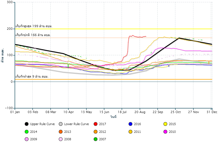 ปริมาณน้ำกักเก็บอ่างเก็บน้ำ เขื่อนป่าสักชลสิทธิ์![]() |