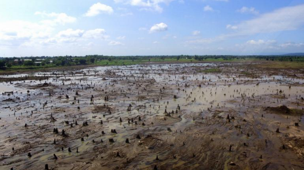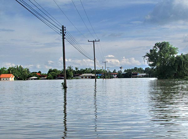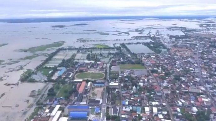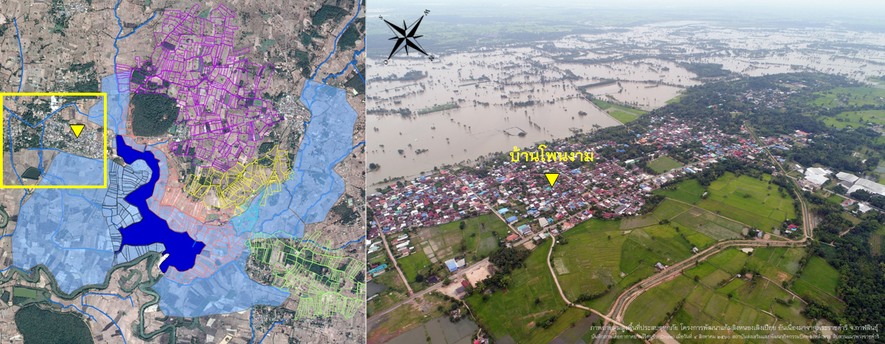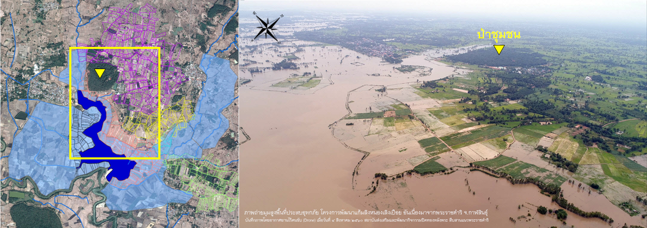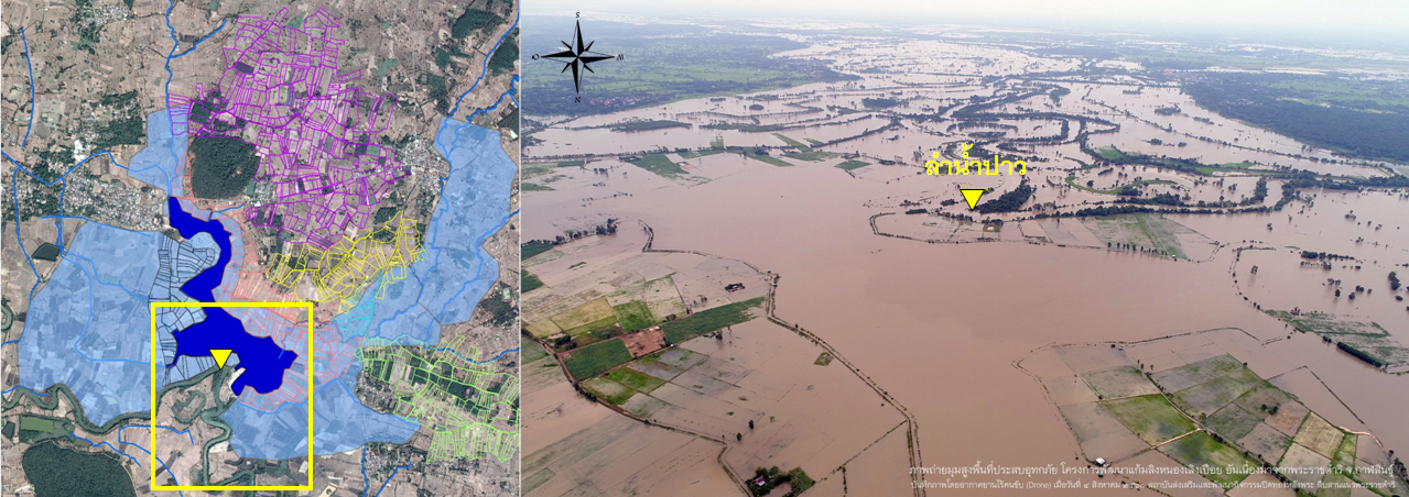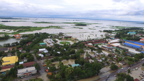 ภาพถ่ายทางอากาศแสดงพื้นที่น้ำท่วม