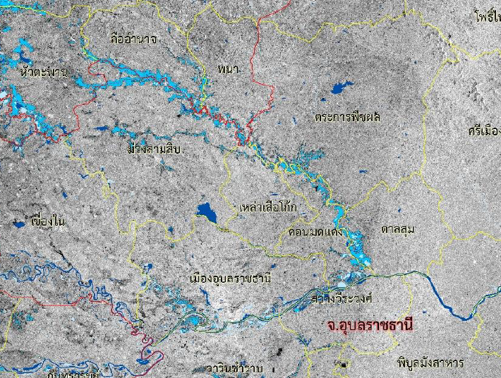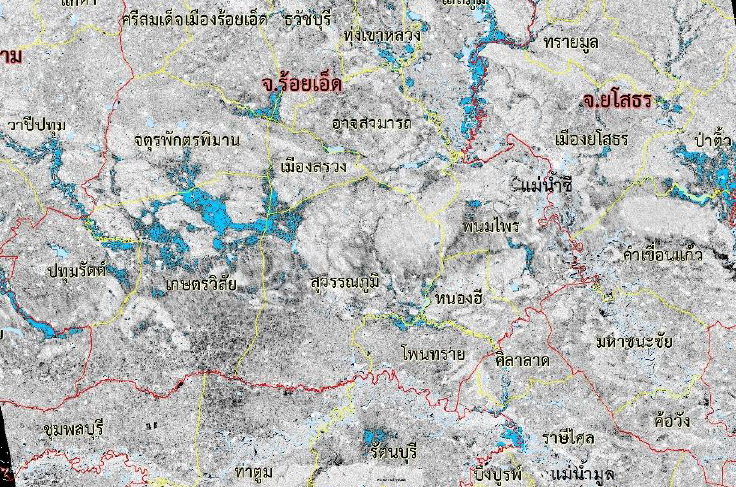 รายงานการติดตามพื้นที่น้ำท่วมปี 2560 โดยใช้ข้อมูลจากดาวเทียม Radarsat-2 บันทึกภาพวันที่ 2 สิงหาคม 2560 เวลา 05.50 น. บริเวณบางส่วนของจังหวัดร้อยเอ็ด ยโสธร ศรีสะเกษ อุบลราชธานี อำนาจเจริญ สุรินทร์ มหาสารคาม บุรีรัมย์ รายละเอียดเพิ่มเติม |