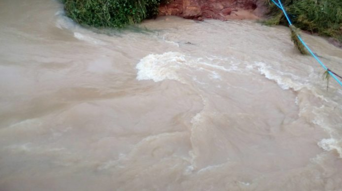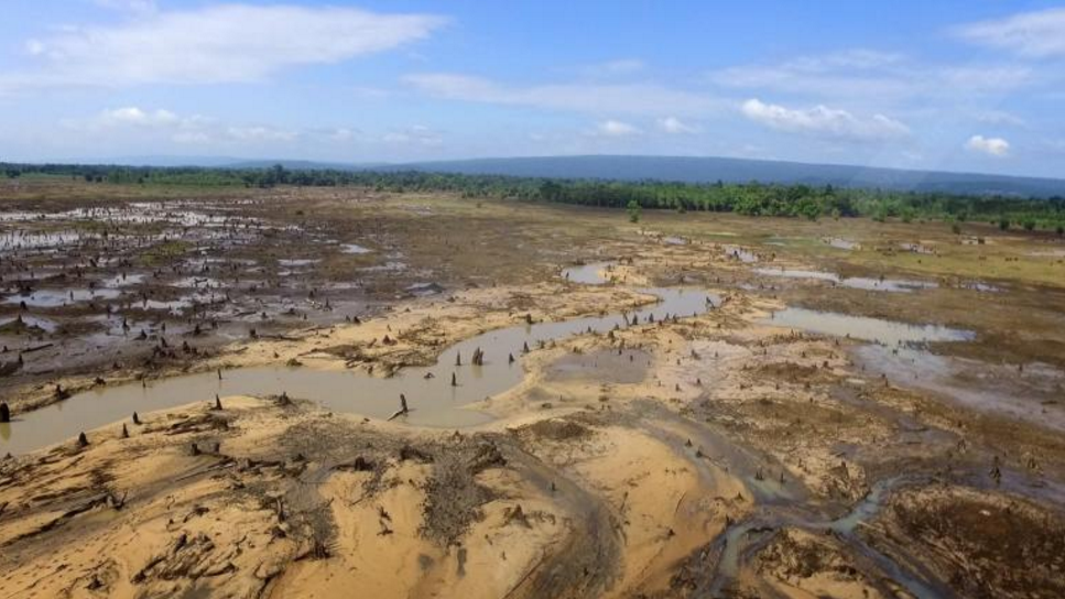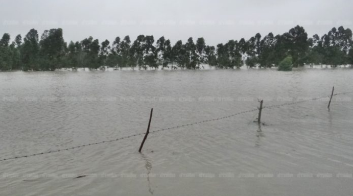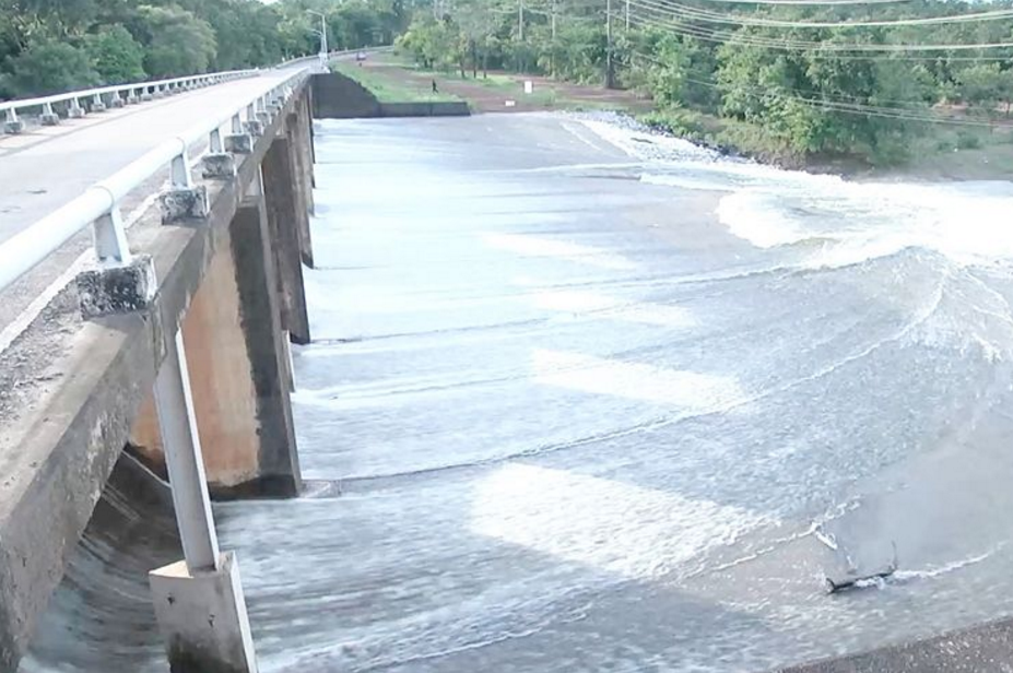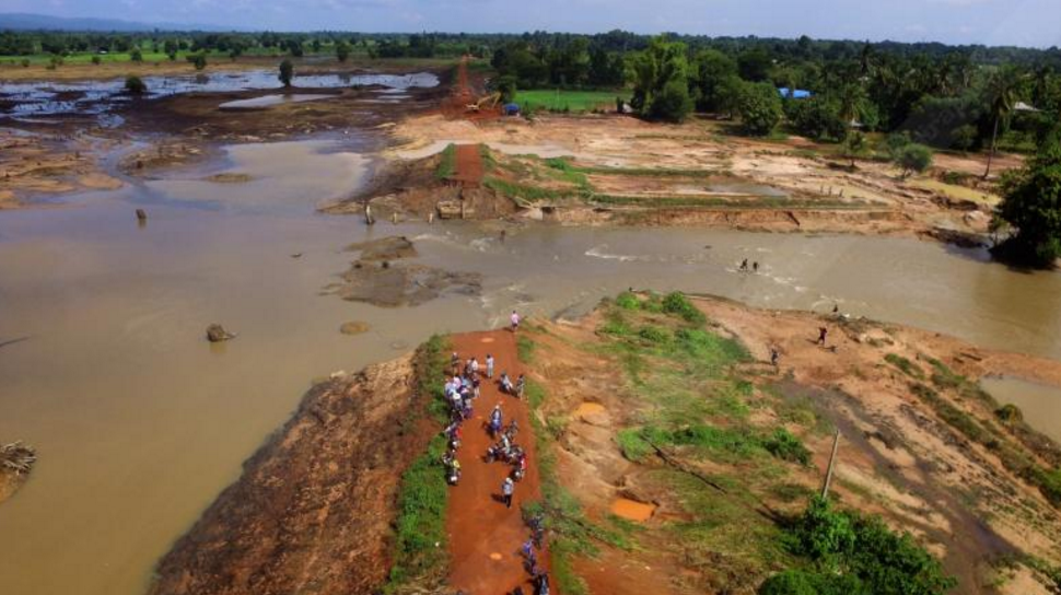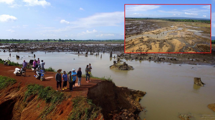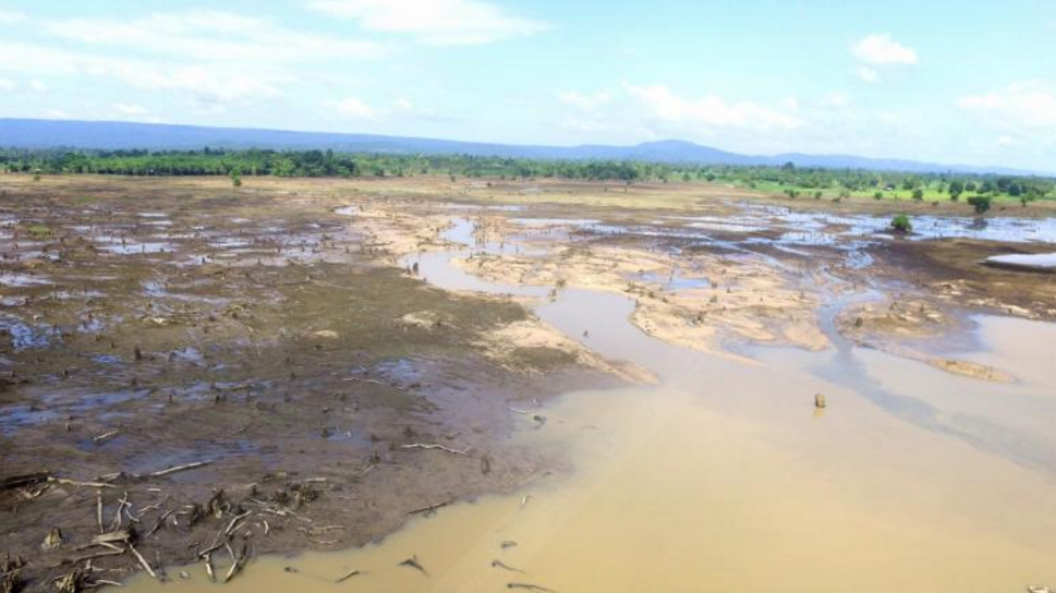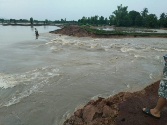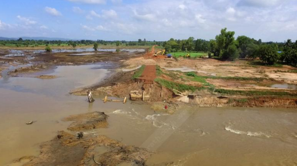 ภาพอ่างเก็บน้ำห้วยทรายขมิ้น จ.สกลนคร หลังประตูระบายน้ำและคันดินพัง ![]() |