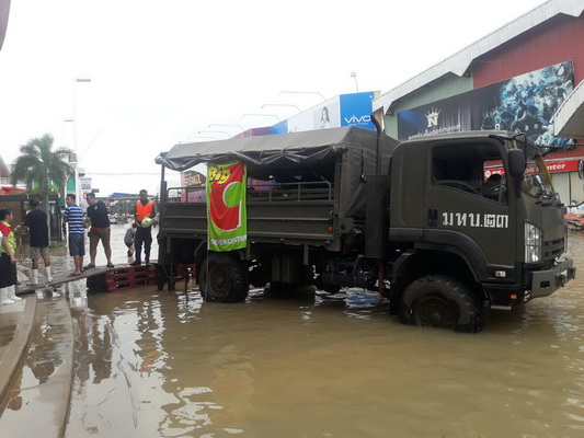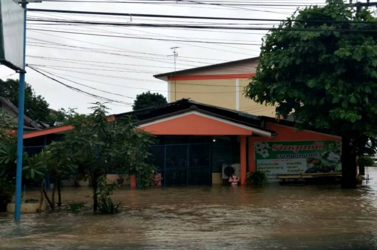 3) จังหวัดนครพนม วันที่ 24-29 ก.ค. 60 ฝนตกหนักและมวลน้ำจากหนองหาน จ.สกลนคร ทำให้น้ำไหลหลากในพื้นที่ 10 อำเภอ ได้แก่ อ.นาแก อ.เรณูนคร อ.วังยาง อ.นาหว้า อ.ศรีสงคราม อ.โพนสวรรค์ อ.ท่าอุเทน อ.ธาตุพนม อ.นาทม อ.ปลาปาก รวมทั้งสิ้น 71 ตำบล 562 หมู่บ้าน ราษฎรได้รับผลกระทบ 20,162 ครัวเรือน 62,561 คน (จุดอพยพ 3 จุด จำนวน 300 คน ได้แก่ (1) ศูนย์พักพิงชั่วคราว วัดโพธิ์ชัยศรี ตำบลพิมาน อ.นาแก ผู้อพยพจำนวน 200 คน (2) ศูนย์พักพิงชั่วคราว โรงเรียนบ้านนาขามส้มป่อย อ.วังยาง ผู้อพยพจำนวน 50 คน (3) ศูนย์พักพิงชั่วคราว โรงเรียนบ้านดอนขาว อ.เรณูนคร ผู้อพยพจำนวน 50 คน) พื้นที่การเกษตร 186,663 ไร่ ด้านปศุสัตว์ได้รับความเสียหายเกษตรกร 4 ราย ไก่พื้นเมือง 923 ตัว เป็ดไข่ 38 ตัว เป็ดเนื้อ 190 ตัว ไก่งวง 56 ตัว ได้รับผลกระทบ 686 ราย โค 1,403 ตัว กระบือ 1,948 ตัว สุกร 1,328 ตัว แพะ 29 ตัว ไก่พื้นเมือง 6,953 ตัว ไก่เนื้อ 5,500 ตัว ไก่งวง 56 ตัว เป็ด 538 ตัว เป็ดเนื้อ 1,418 ตัว นกกระทา 700 ตัว ห่าน 23 ตัว สุนัข 213 ตัว แมว 42 ตัว สัตว์น้ำที่เลี้ยงในบ่อดิน 3,011 ราย 1,987 ไร่ สัตว์น้ำ ที่เลี้ยงในกระชังบ่อซีเมนต์ 3 ราย 315 ตรม. ถนนได้รับผลกระทบ 60 จุด
