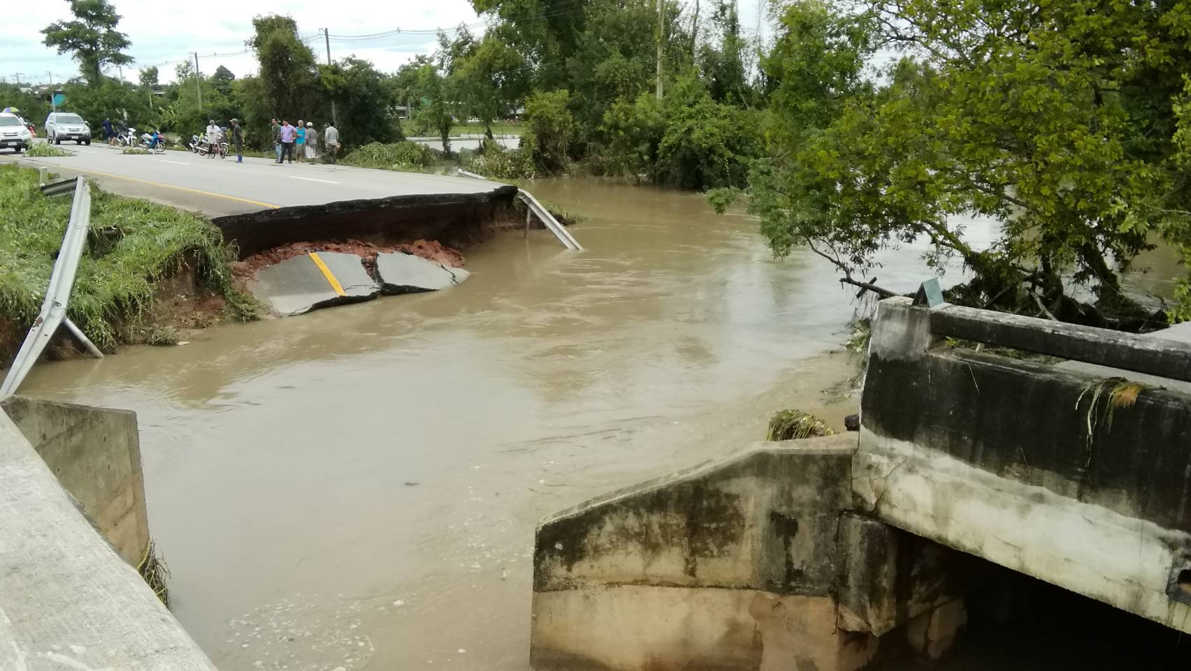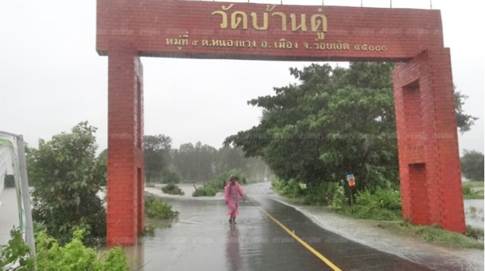 7) จังหวัดหนองคาย วันที่ 31 ก.ค. 60 ฝนตกหนักทำให้น้ำไหลหลากในพื้นที่ อ.เฝ้าไร่ ต.นาดี (ม.1-7) ต.อุดมพร (ม.2,3,5,7,9,10,13,14) ประชาชนได้รับผลกระทบ 267 ครัวเรือน พื้นที่การเกษตรเสียหาย 1,455 ไร่ โค 65 ตัว กระบือ 29 ตัว วัด 1 แห่ง โรงเรียน 1 แห่ง และน้ำท่วมถนน 3 เส้นทาง ได้แก่ จุดที่ 1 ถนนบ้านนาดี ม.1 ต.นาดี ระดับน้ำสูงประมาณ 30-40 ซม. จุดที่ 2 ถนนหน้าวัดจันทรรังษี บ้านโนนยาง ม.2 ต.นาดี ระดับน้ำสูงประมาณ 30-40 ซม. ท่วมผิวทางจราจรเป็นระยะทาง 115 ม. จุดที่ 3 บ้านเจริญสุข ม.7 ต.นาดี ระดับน้ำสูงประมาณ 93 ซม. ท่วมผิวทางจราจรเป็นระยะทาง 300 ม.
