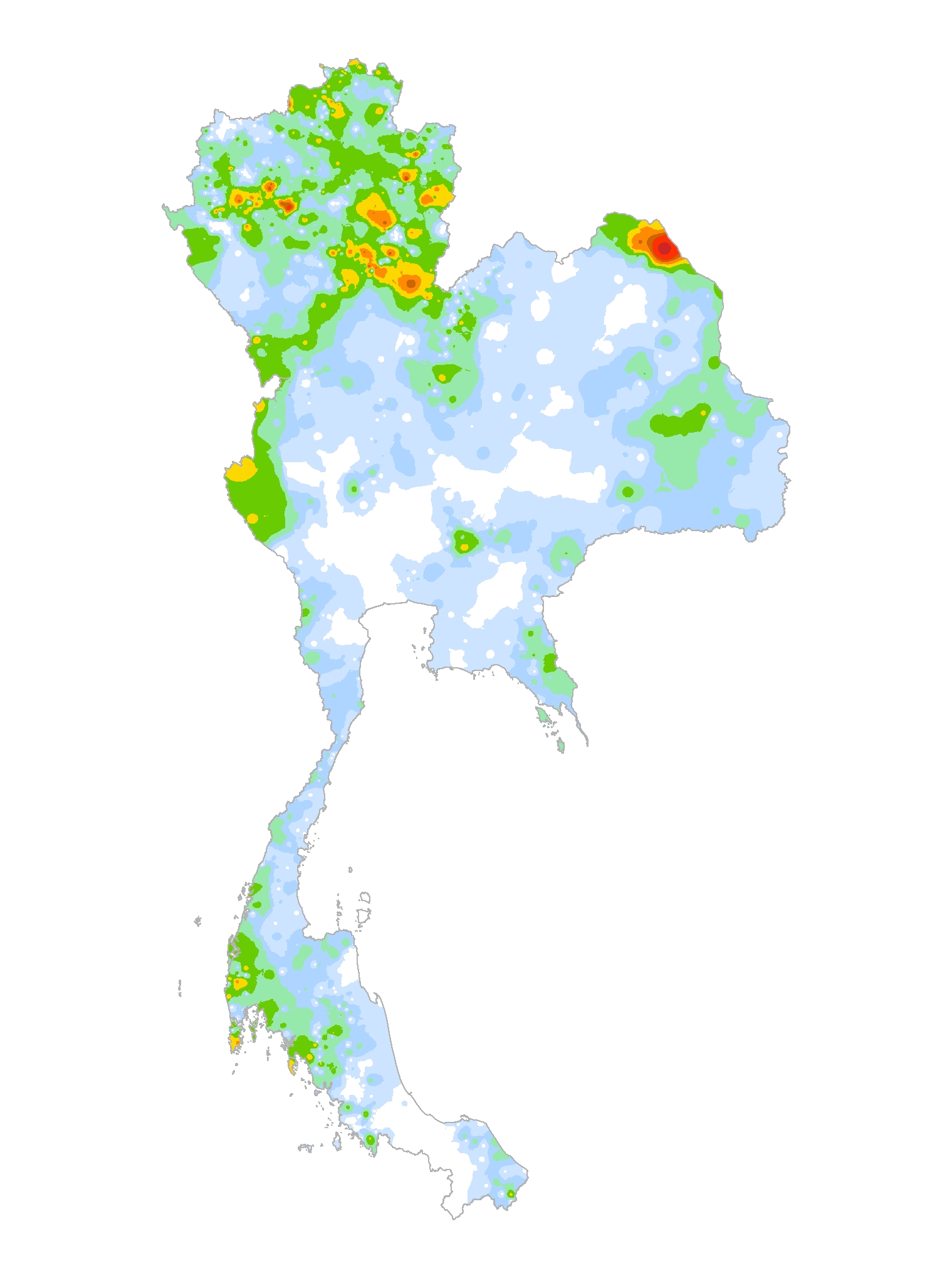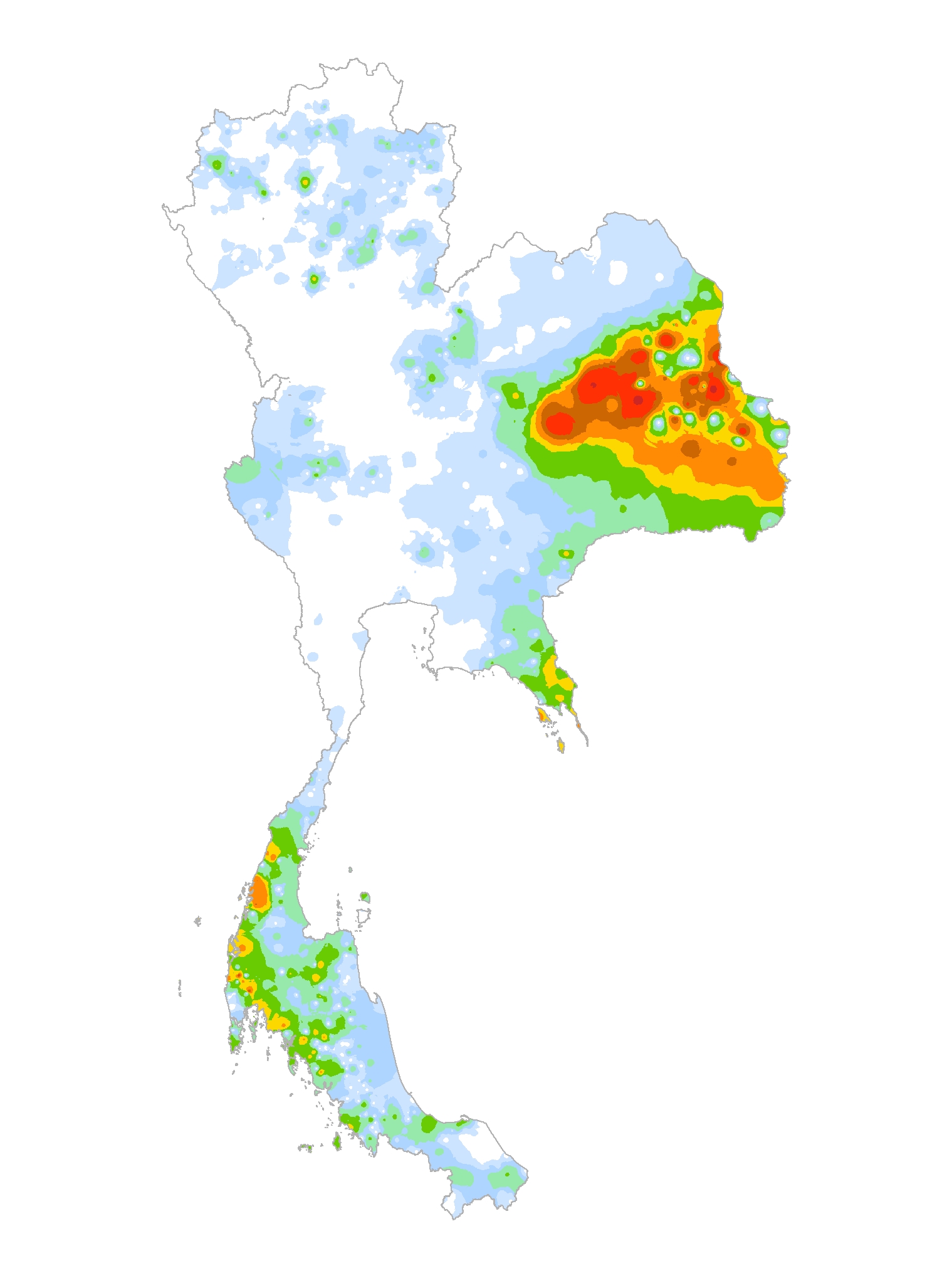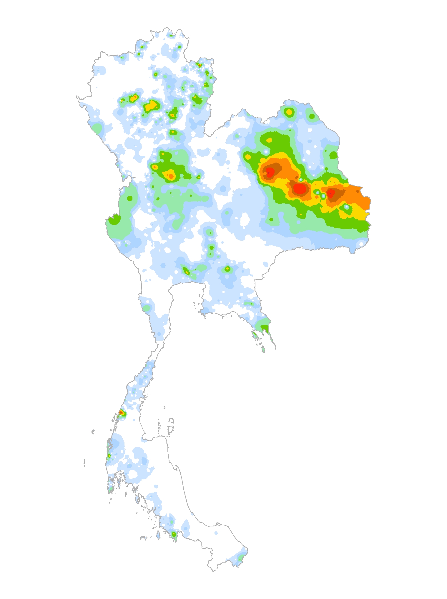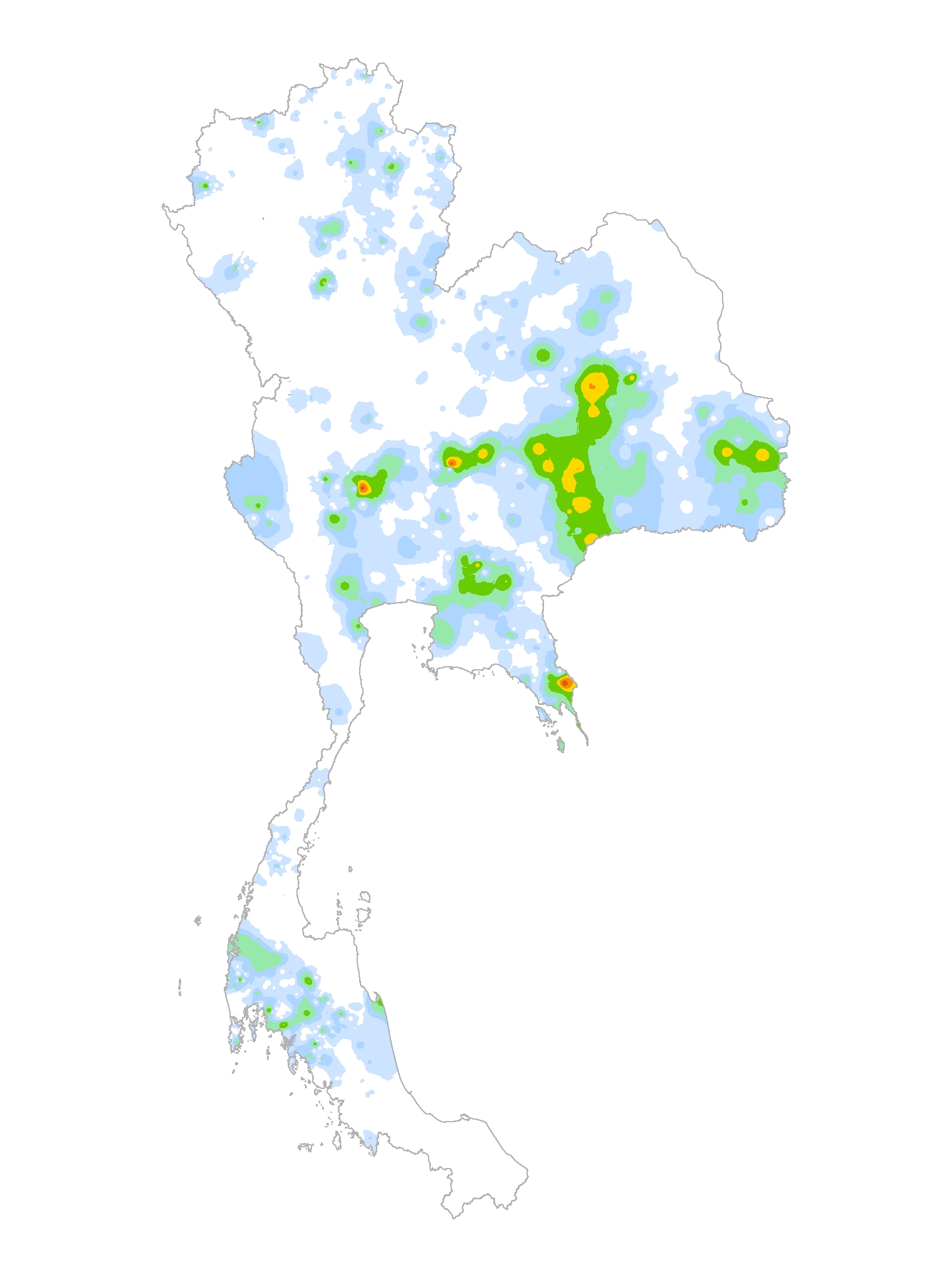 แผนที่แสดงการกระจายตัวของปริมาณฝนสะสม