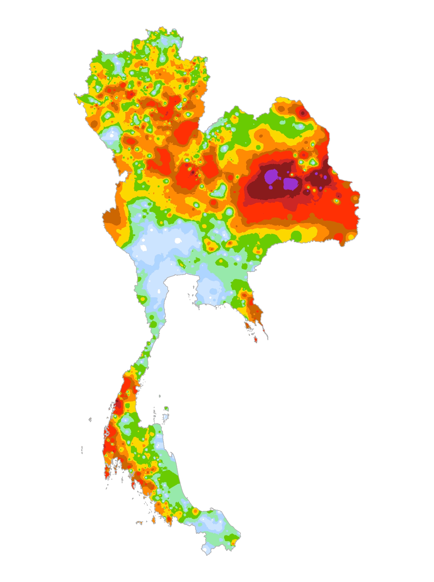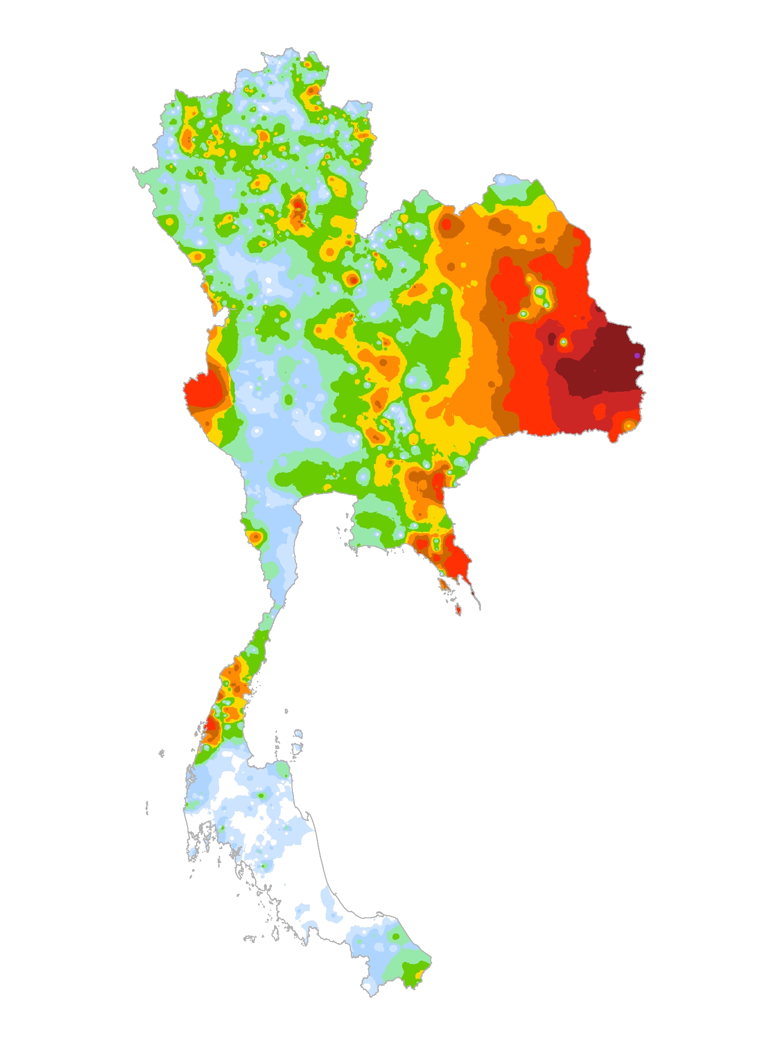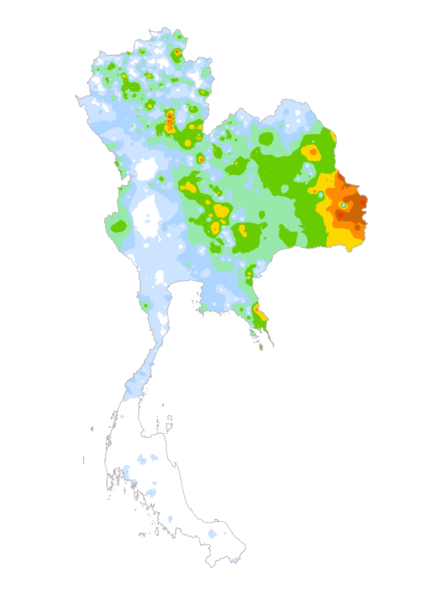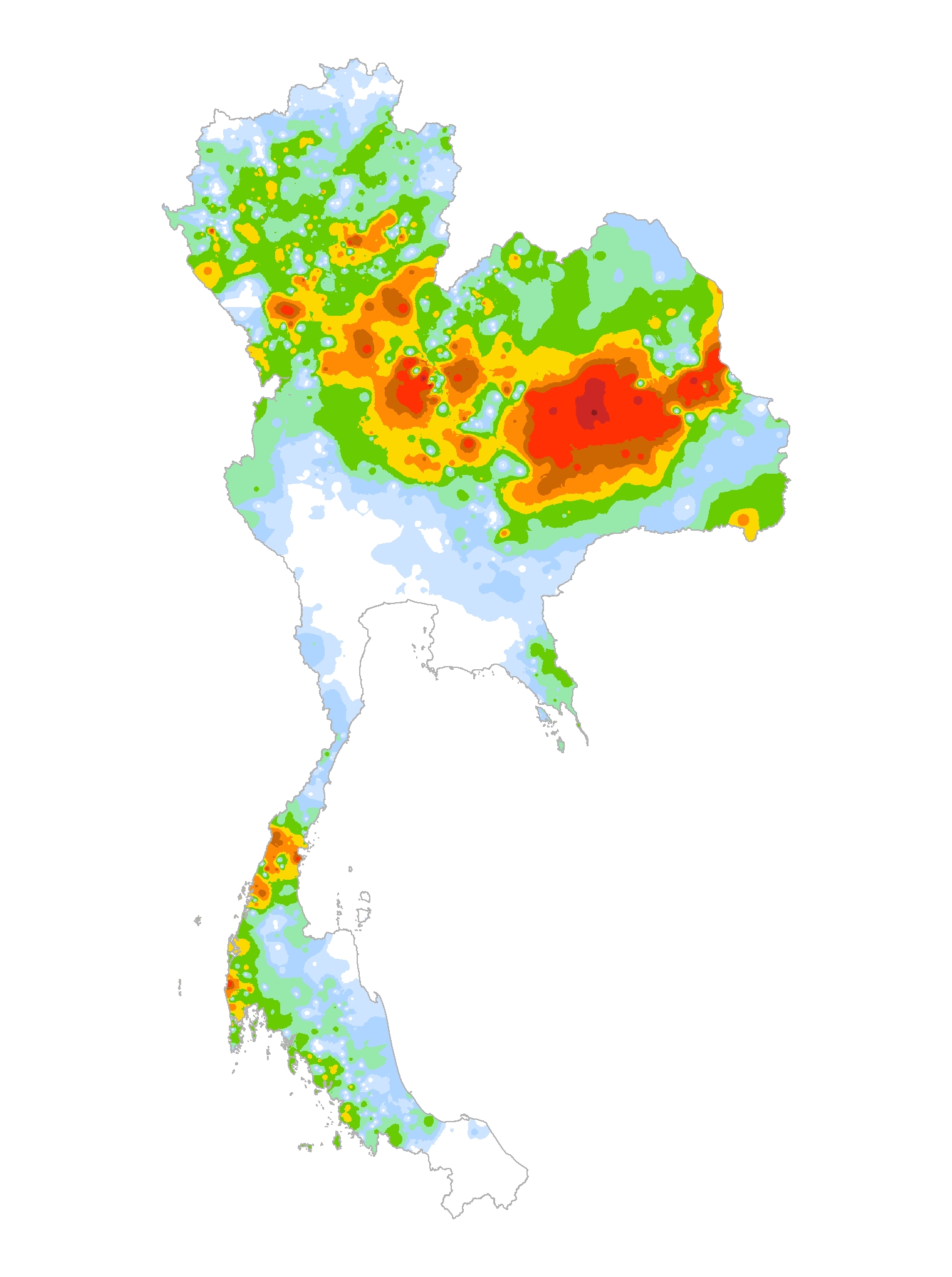 แผนที่แสดงการกระจายตัวของปริมาณฝนสะสม