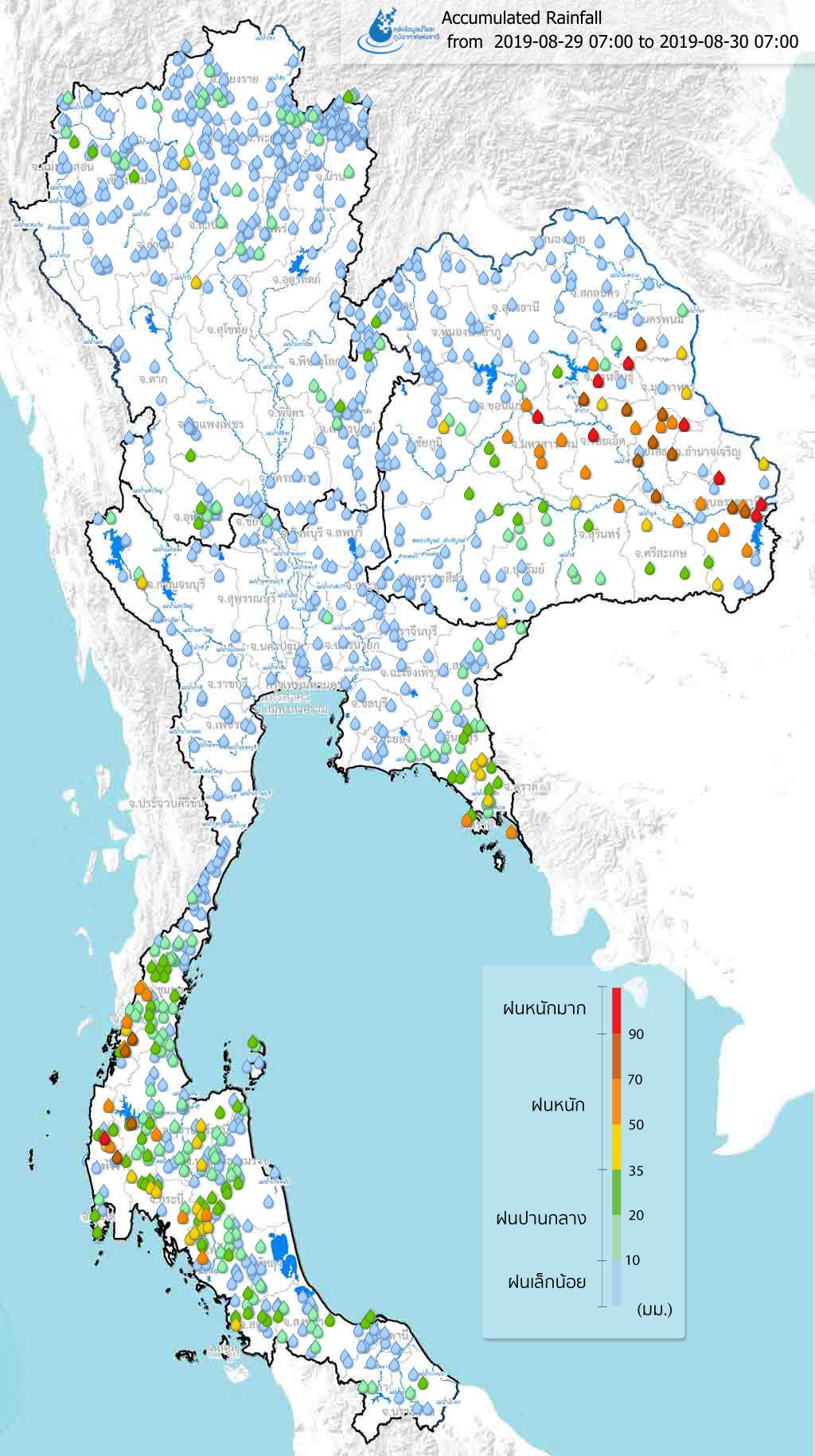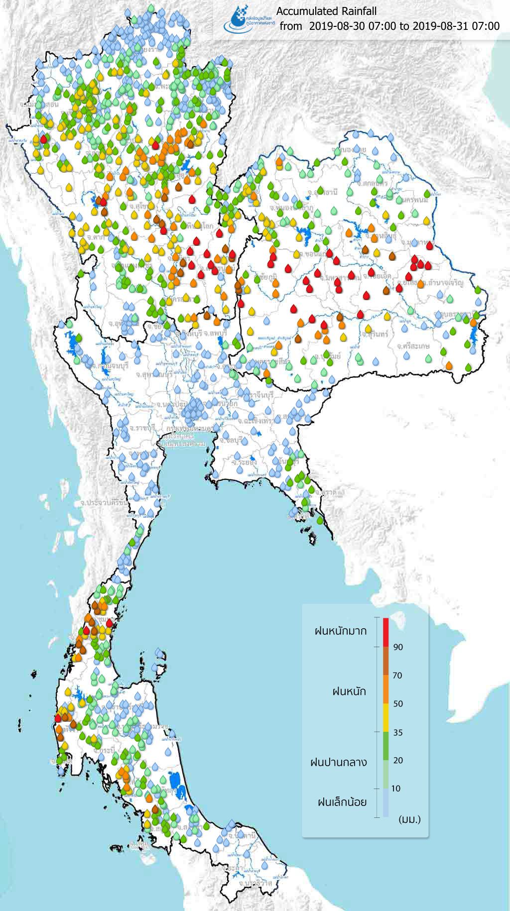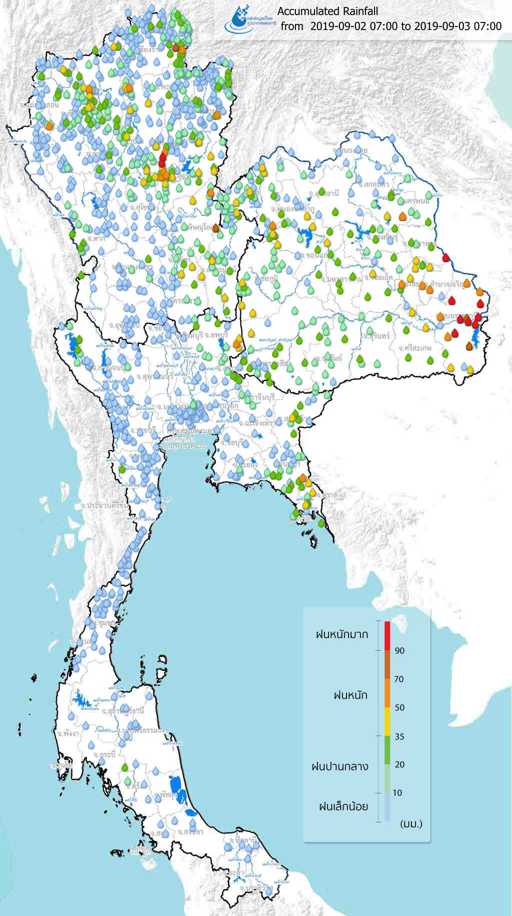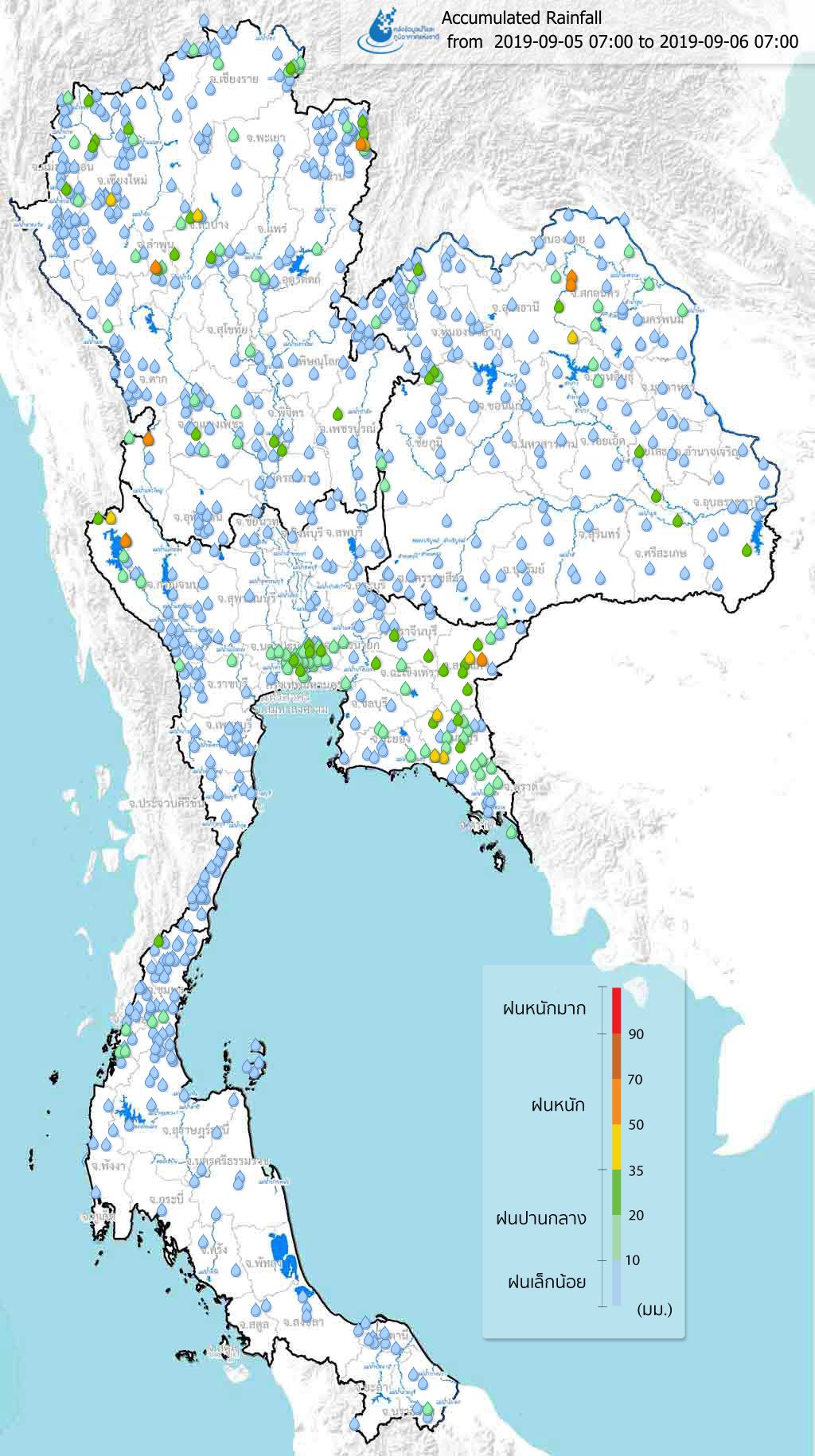 ปริมาณฝนสะสมจากสถานีตรวจอากาศ