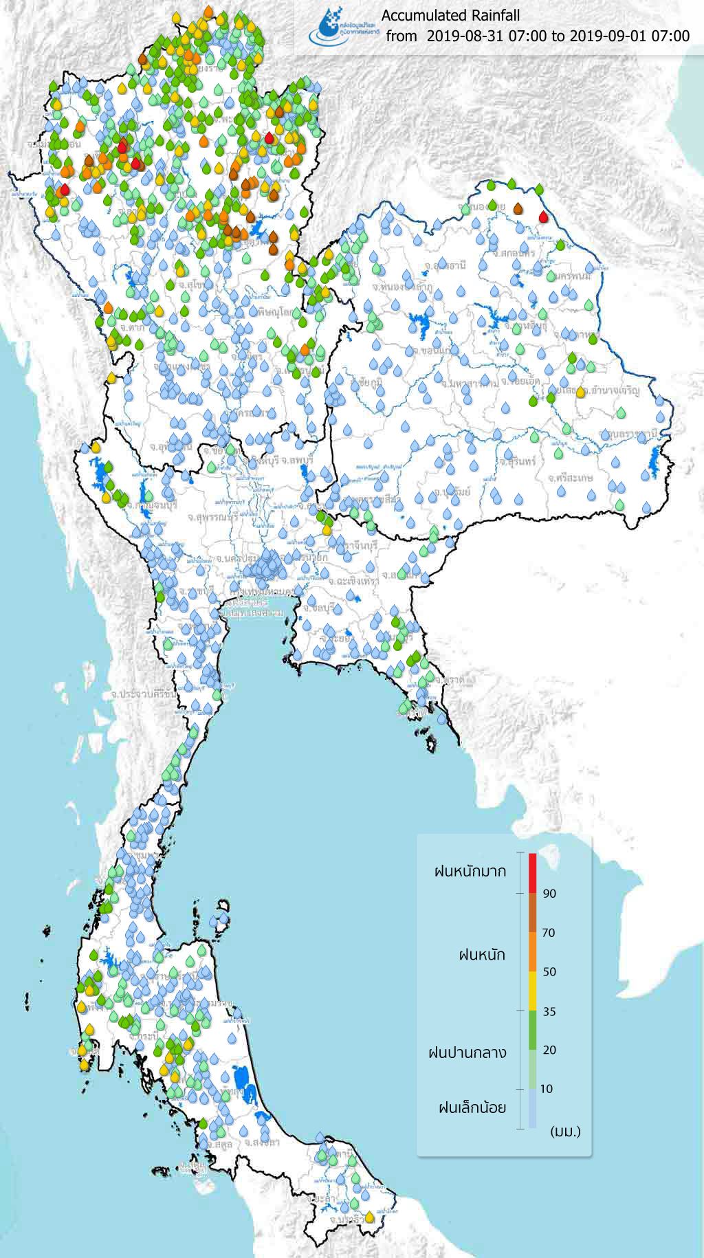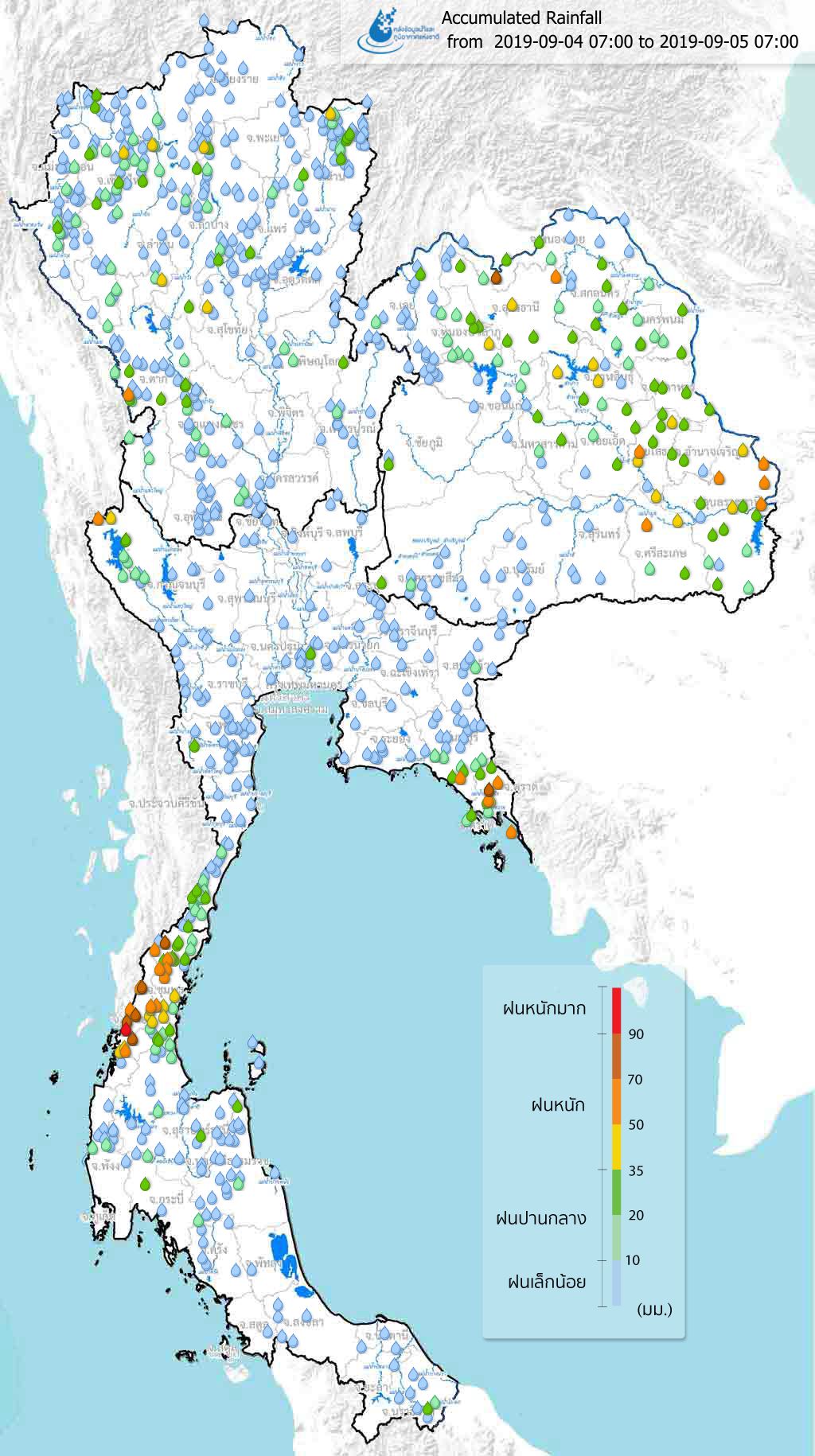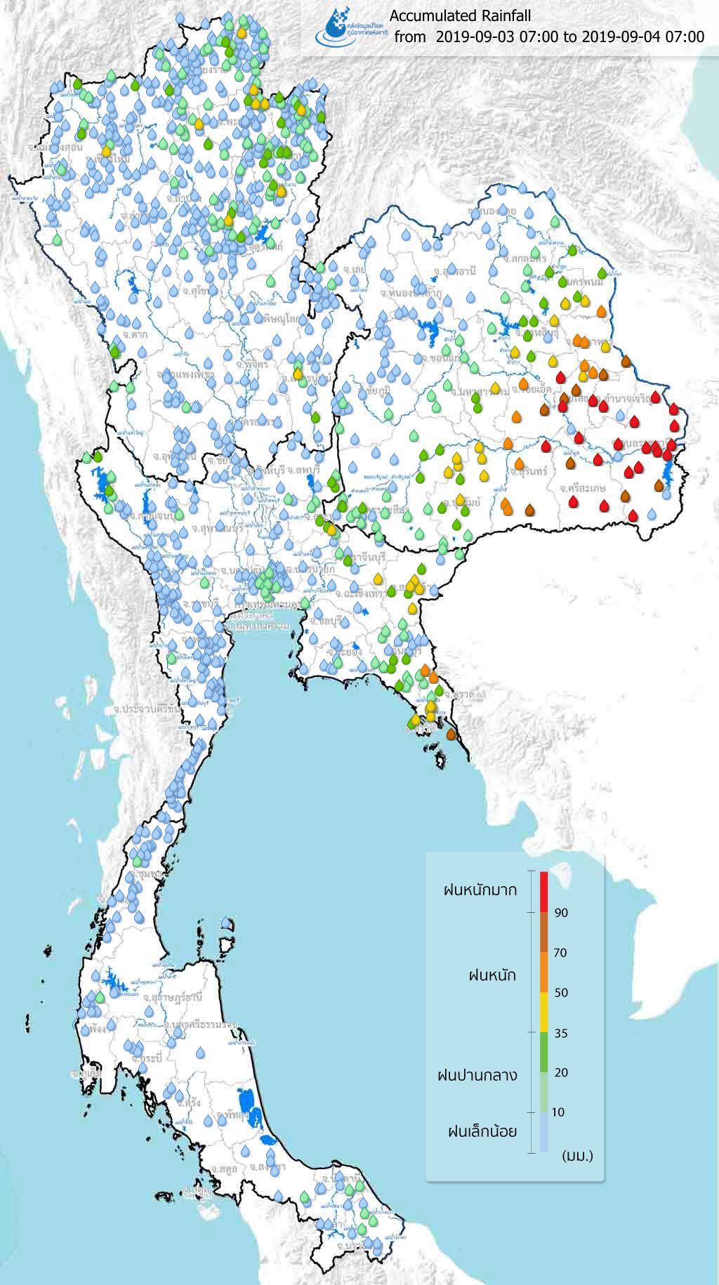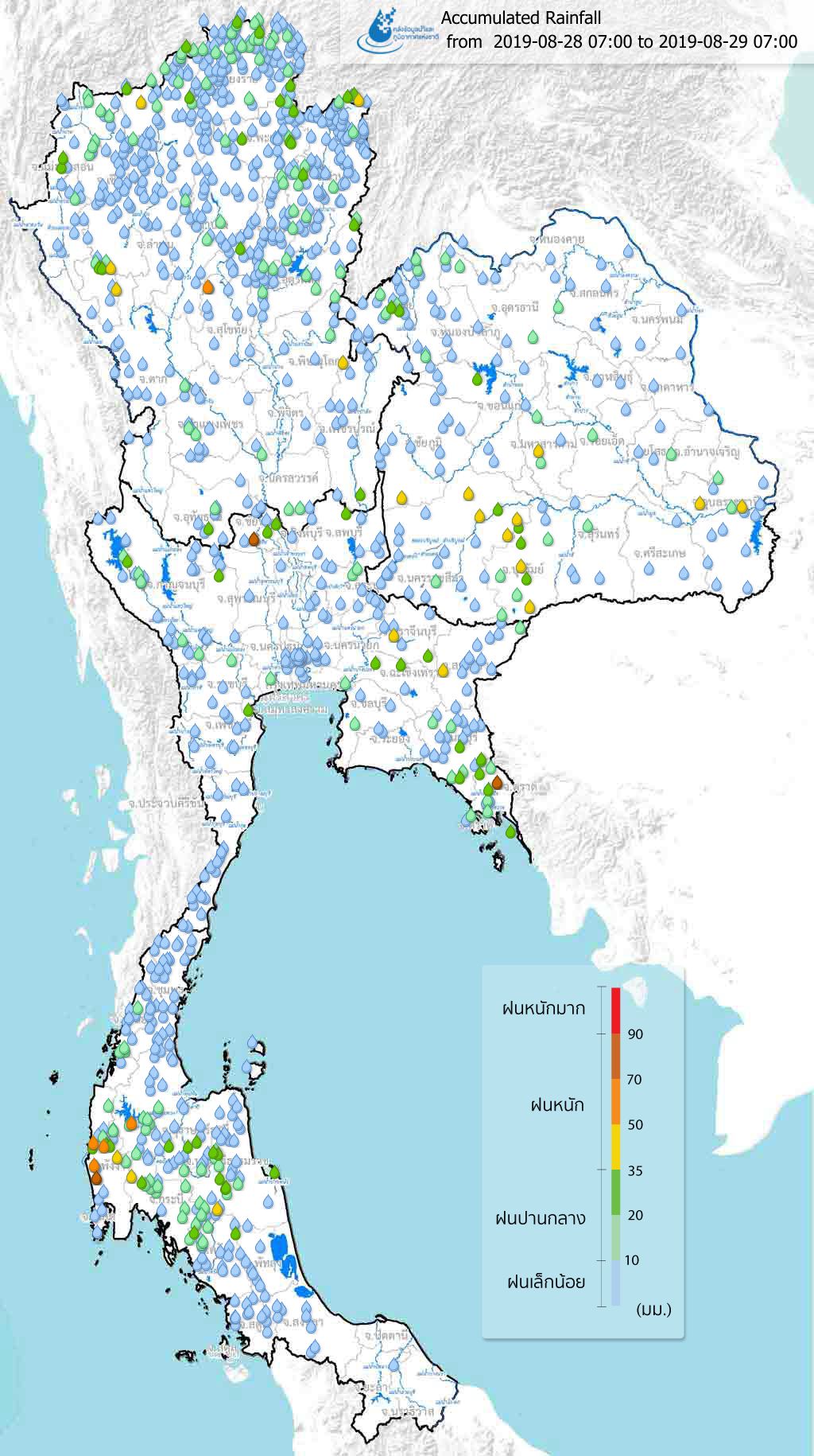 ปริมาณฝนสะสมจากสถานีตรวจอากาศ