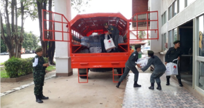 การให้ความช่วยเหลือ ผวจ.ขอรับพระมหากรุณาธิคุณพระราชทานโรงครัวพระราชทานประกอบอาหาร พระราชทานเลี้ยงบรรเทาทุกข์ผู้ประสบภัย จำนวน 3 จุด ได้แก่ ในพื้นที่ อ.เมือง 1)ต.ในเมือง บริเวณวัดกลาง ศรีไตรภูมิ 2) ต.ค้อเหนือ บริเวณโครงการพระราชดำริหนองอึ่ง 3) ต.นาแก อ.คำเขื่อนแก้ว บริเวณโรงเรียนบ้านนาแก มูลนิธิเพื่อนพึ่ง (ภาฯ) ยามยาก สภากาชาดไทย จัดตั้งโรงครัวในพื้นที่ จำนวน 3 จุด