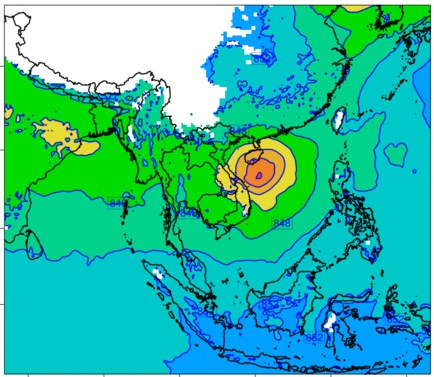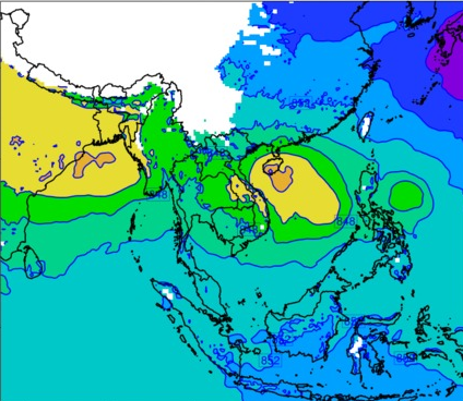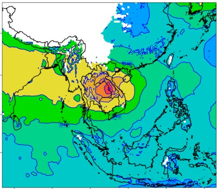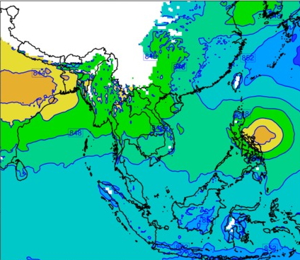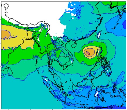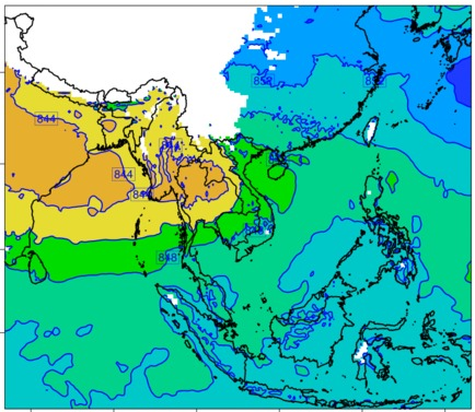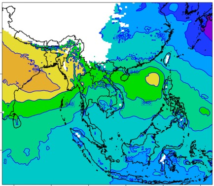 แผนที่ความกดอากาศ จากแบบจำลองสภาพอากาศ WRF-ROMS