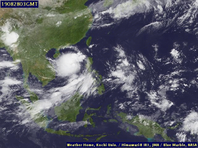 ข้อมูลจากภาพถ่ายดาวเทียม Himawari-8 แสดงให้เห็นว่าอิทธิพลจากพายุโซนร้อน "โพดุล" (PODUL) ส่งผลทำให้เริ่มมีกลุ่มเมฆปกคลุมหนาแน่นภาคตะวันออกเฉียงเหนือและภาคตะวันออก ตั้งแต่ช่วงวันที่ 28 สิงหาคม 2562 ต่อเนื่องไปถึงวันที่ 30 สิงหาคม 2532 ตามการเคลื่อนตัวของพายุ โดยเฉพาะช่วงวันที่ 29-30 สิงหาคม 2562 ที่มีกลุ่มเมฆปกคลุมบริเวณประเทศไทยเกือบทุกพื้นที่ ก่อนจะเริ่มสลายตัวไปในวันที่ 31 สิงหาคม 2562 ทั้งนี้ ในช่วงเวลาเดียวกันนี้ จะสังเกตได้ว่ามีกลุ่มเมฆหนาจากอิทธิพลของพายุดีเปรสชัน “คาจิกิ” (KAJIKI) กระจุกตัวอยู่บริเวณทะเลจีนใต้ตอนบน และมีทิศทางการเคลื่อนตัวมาทางทิศตะวันตก ซึ่งลักษณะกลุ่มเมฆมีการหมุนตัวกระจายแผ่ปกคลุมในหลายพื้นที่เป็นบริเวณกว้างมากขึ้นในช่วงวันที่ 2-3 กันยายน 2562 เนื่องจากพายุดังกล่าวได้ทวีกำลังแรงขึ้นเป็นพายุโซนร้อน หลังจากนั้นกลุ่มเมฆได้สลายตัวเบาบางลงในวันต่อมา เนื่องจากพายุได้อ่อนกำลังลงเป็นพายุดีเปรสชันและเคลื่อนตัวถอยกลับไปยังประเทศเวียดนามแล้วสลายตัวไปในบริเวณทะเลจีนใต้ตอนบนทางตอนใต้ของเกาะไหหลำ