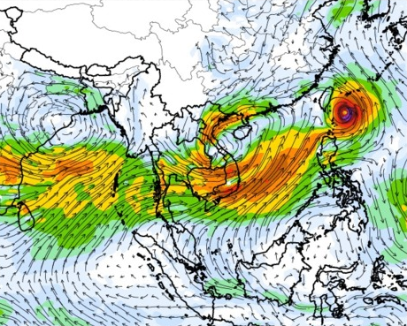 ภาพแผนที่แสดงความเร็วลมที่ระดับความสูง 1.5 กิโลเมตร จากระดับน้ำทะเล แสดงให้เห็นว่าอิทธิพลของพายุโซนร้อน "โพดุล" (PODUL) ทำให้เกิดลมพัดแรงในหลายพื้นที่ตามการเคลื่อนตัวของพายุ อีกทั้งอิทธิพลของพายุยังส่งผลทำให้มรสุมตะวันตกเฉียงใต้ที่พัดปกคลุมบริเวณทะเลอันดามัน ประเทศไทย และอ่าวไทย มีกำลังแรงขึ้นด้วย โดยเฉพาะในช่วงวันที่ 30-31 สิงหาคม 2562 ที่พายุได้เคลื่อนตัวอยู่ในบริเวณประเทศไทย ทำให้ในหลายพื้นที่ของประเทศเกิดลมแรง รวมถึงมรสุมตะวันตกเฉียงใต้มีกำลังแรงเพิ่มขึ้นมาก ความเร็วลมสูงสุดอยู่ที่ประมาณ 70-80 กิโลเมตรต่อชั่วโมง และถึงแม้พายุจะสลายตัวไปแล้วตั้งแต่วันที่ 30 สิงหาคม 2562 แต่ลมมรสุมตะวันตกเฉียงใต้ยังคงมีกำลังแรง ส่งผลทำให้ประเทศไทยยังคงมีฝนต่อเนื่อง ทั้งนี้จะเห็นได้ว่าในช่วงวันที่ 2-3 กันยายน 2562 บริเวณทะเลจีนใต้ตอนบนมีลมแรงมากจากอิทธิพลของพายุโซนร้อน “คาจิกิ” (KAJIKI) ถึงแม้ว่าพายุดังกล่าวจะไม่ได้เคลื่อนตัวเข้าสู่บริเวณประเทศไทย แต่อิทธิพลของพายุได้ส่งผลทำให้บริเวณภาคตะวันออกเฉียงเหนือตอนล่าง ภาคกลางและภาคใต้ตอนบนของประเทศไทยมีลมแรงด้วยเช่นกัน ความเร็วลมสูงสุดอยู่ที่ประมาณ 70-80 กิโลเมตรต่อชั่วโมง ต่อมาในช่วงวันที่ 4-5 กันยายน 2562 ยังคงมีลมแรงในบริเวณดังกล่าว แต่ความเร็วลมลดลงเหลือประมาณ 60-70 กิโลเมตรต่อชั่วโมง ทั้งนี้มรสุมตะวันตกเฉียงใต้ที่พัดปกคลุมทะเลอันดามัน ประเทศไทย และอ่าวไทย มีกำลังแรงต่อเนื่อง ส่งผลทำให้มีฝนตกต่อเนื่องในหลายพื้นที่ของประเทศไทยตั้งแต่ช่วงเกิดสถานการณ์พายุ “โพดุล” จนถึงสถานการณ์ของพายุ “คาจิกิ”