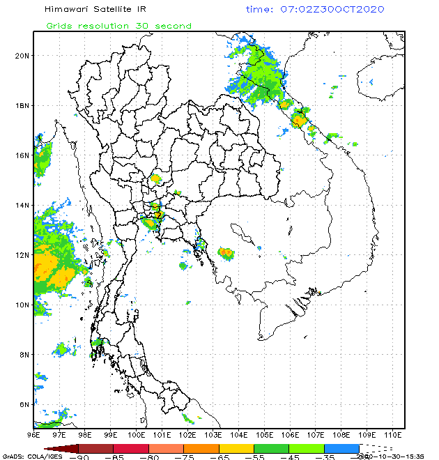 ครอบคลุมทั้งภาคตะวันออกเฉียงเหนือ ภาคเหนือตอนล่าง ภาคกลางและภาคตะวันออก ในวันที่ 29 ตุลาคม 2563 แต่ปริมาณฝนลดน้อยลง แต่ยังคงมีฝนตกต่อเนื่องในบางพื้นที่ โดยเฉพาะในช่วงวันที่ 31 ตุลาคม – 1 พฤศจิกายน 2563 ที่มีฝนตกหนักมาก