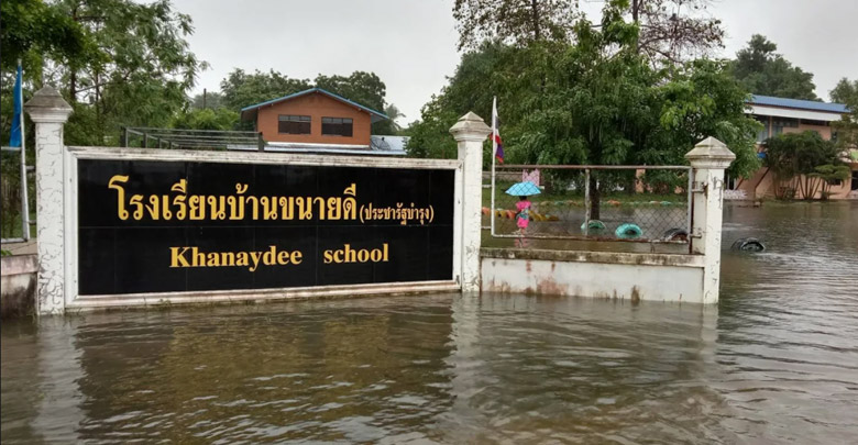 วันนี้ (28 ต.ค.2563) สถานการณ์น้ำท่วมในพื้นที่ อ.โนนสูง จ.นครราชสีมา ยังไม่คลี่คลาย น้ำลำน้ำมูลไหลเข้าท่วมบ้านและวัดธรรมทานวนาราม ต.ลำมูล สูงเกือบ 2 เมตร พระต้องอพยพจากวัด ไปกางเต้นท์จำวัดอยู่ริมถนน ส่วนโรงเรียนบ้านหนองโจด น้ำท่วมสูงกว่า 50 เซนติเมตร และมีแนวโน้มว่าระดับน้ำจะเพิ่มขึ้น ทางโรงเรียนสั่งปิดเรียนชั่วคราวจนกว่าสถานการณ์น้ำท่วมจะเข้าสู่สภาวะปกติ