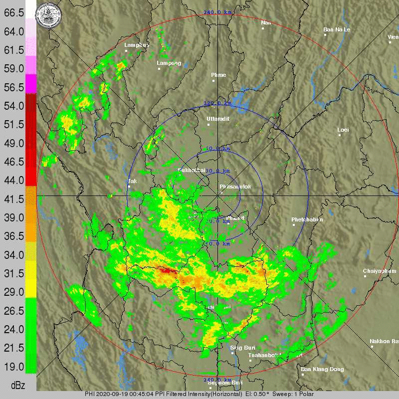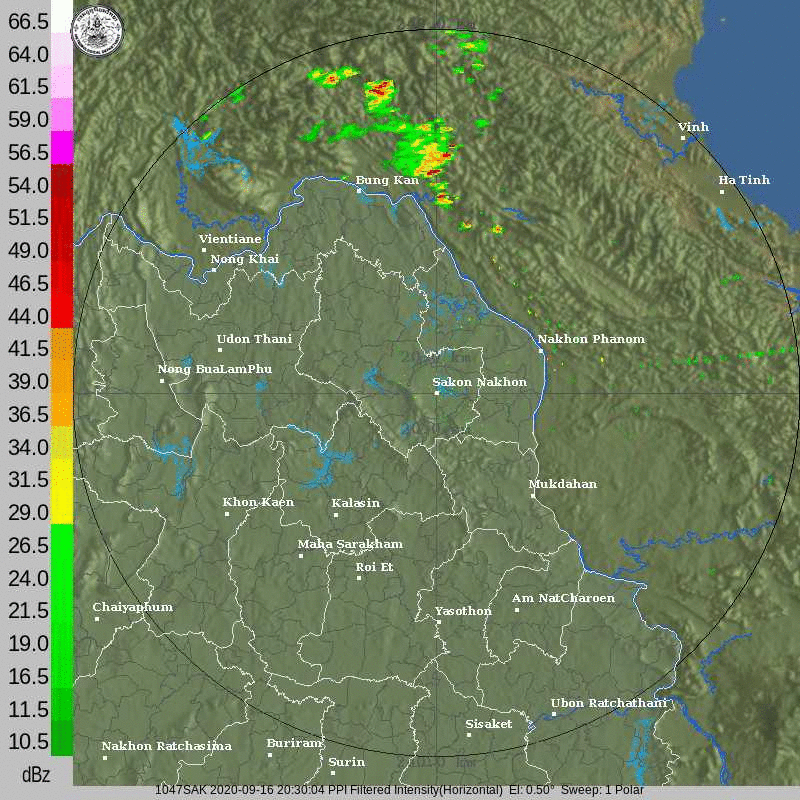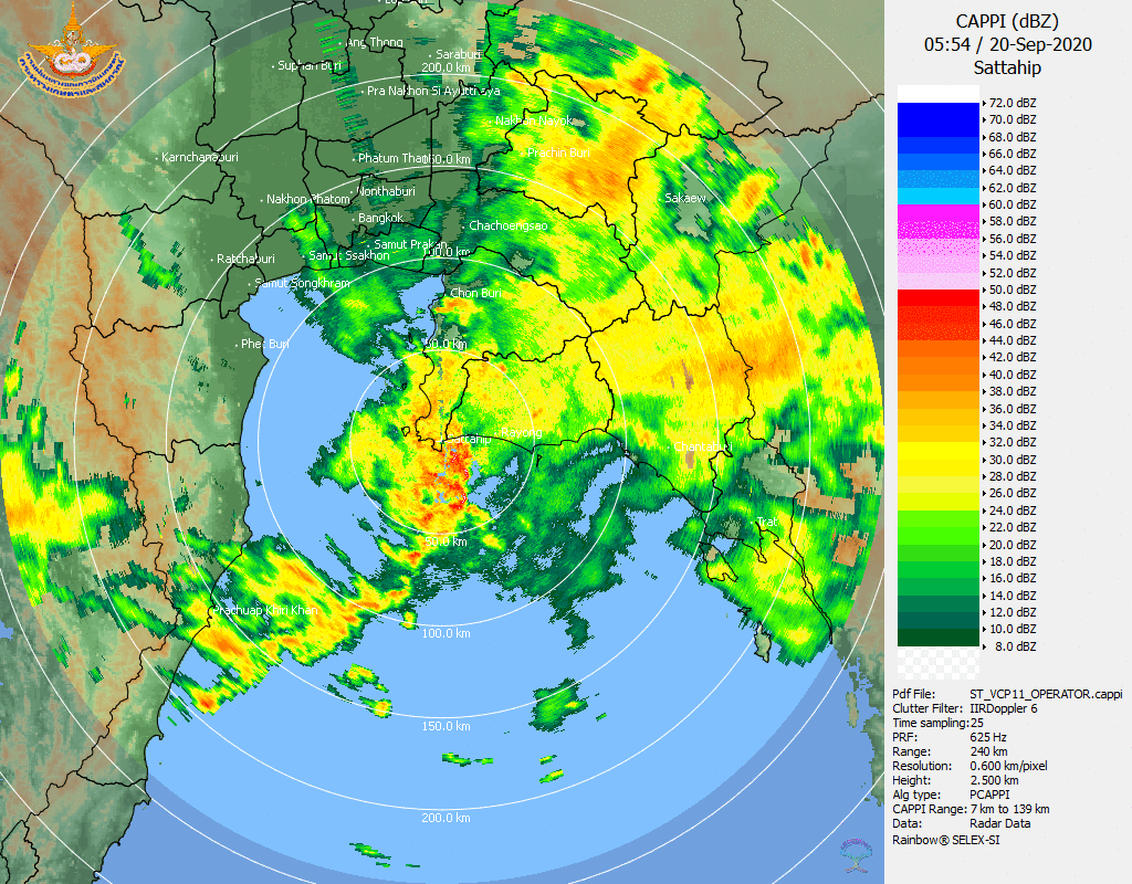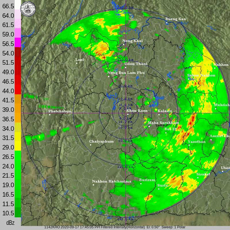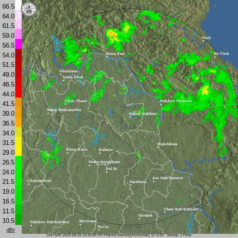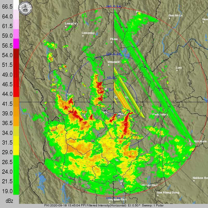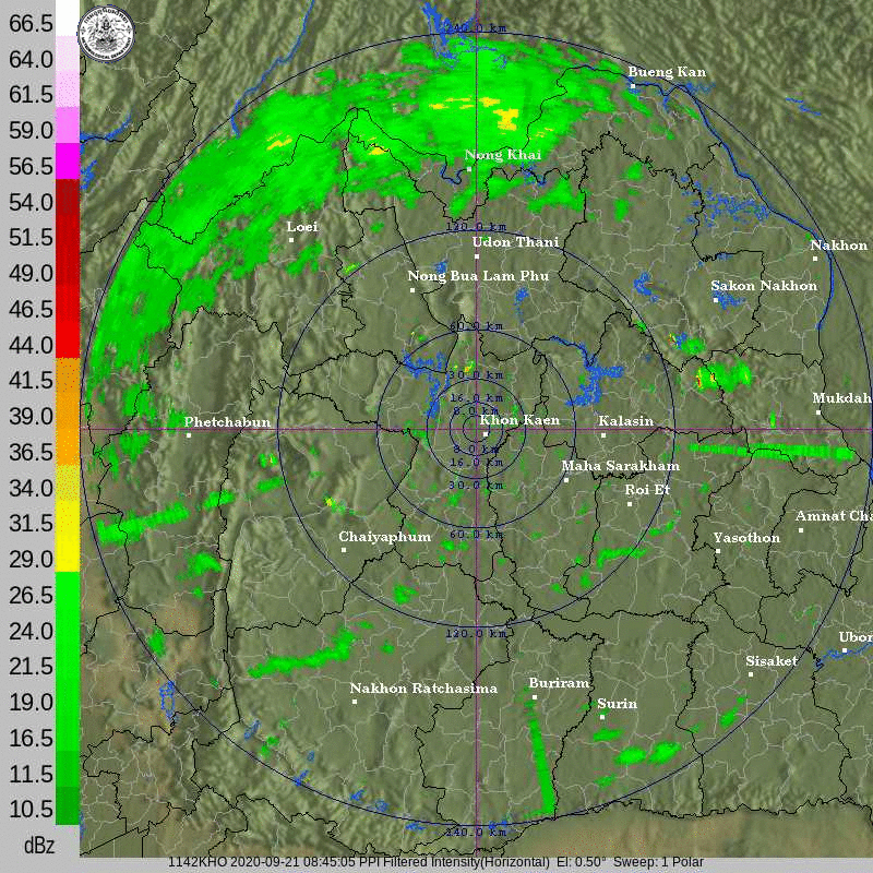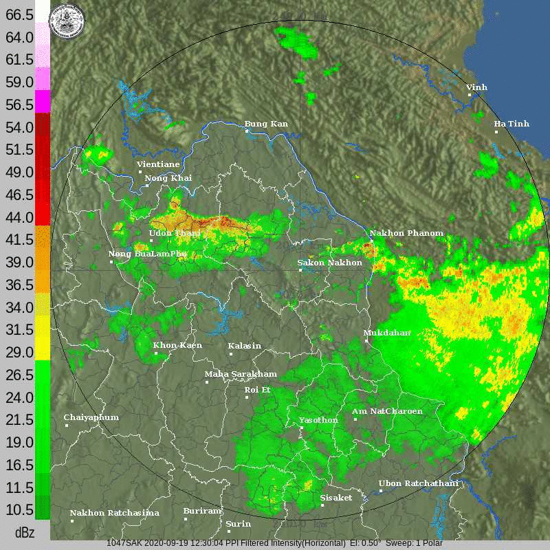 ภาพจากเรดาร์ตรวจวัดปริมาณฝนของกรมอุตุนิยมวิทยา และกรมฝนหลวงและการบินเกษตร ได้แก่ เรดาร์สกลนคร อุบลราชธานี ขอนแก่น พิษณุโลก สัตหีบ แสดงให้เห็นว่ากลุ่มฝนที่เกิดจากอิทธิพลของพายุโซนร้อน “โนอึล” (NOUL) เริ่มเพิ่มขึ้นอย่างเห็นได้ชัดในบริเวณภาคตะวันออกเฉียงเหนือ ตั้งแต่วันที่ 17 กันยายน 2563 ซึ่งขณะนั้นพายุยังไม่ได้เคลื่อนเข้าสู่ประเทศไทย หลังจากนั้น