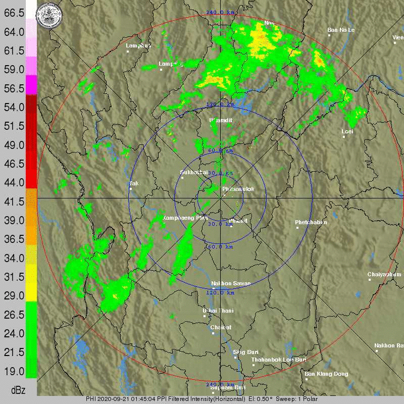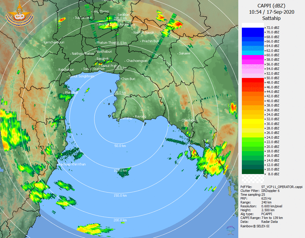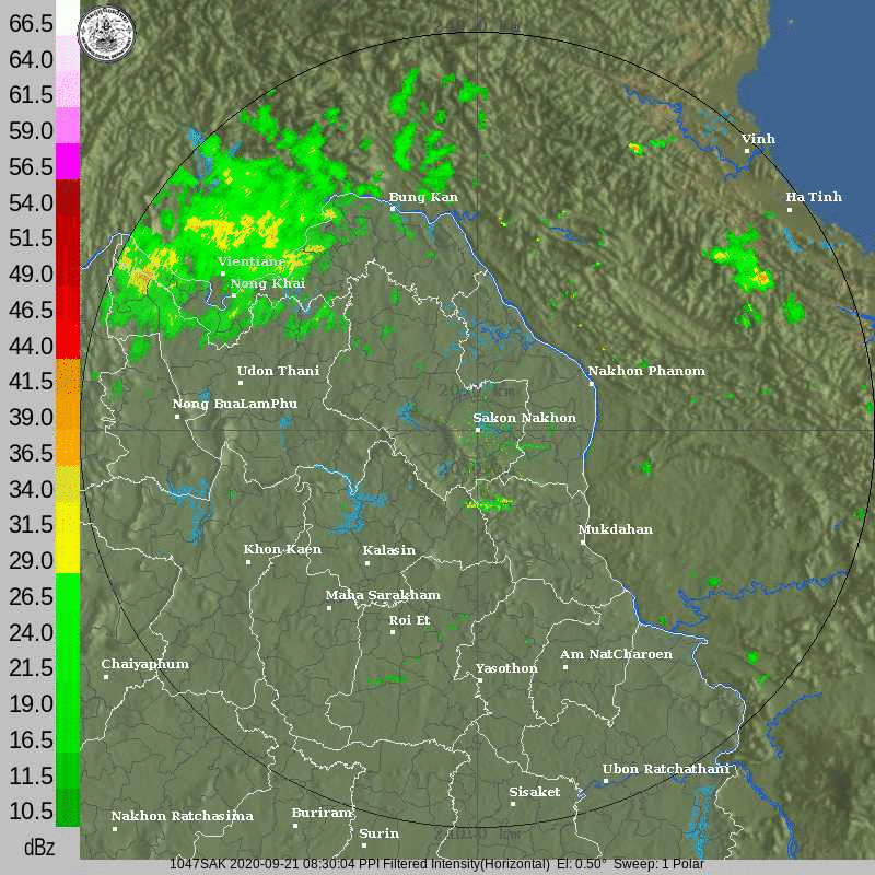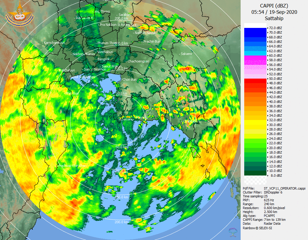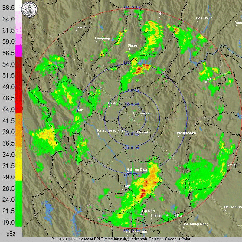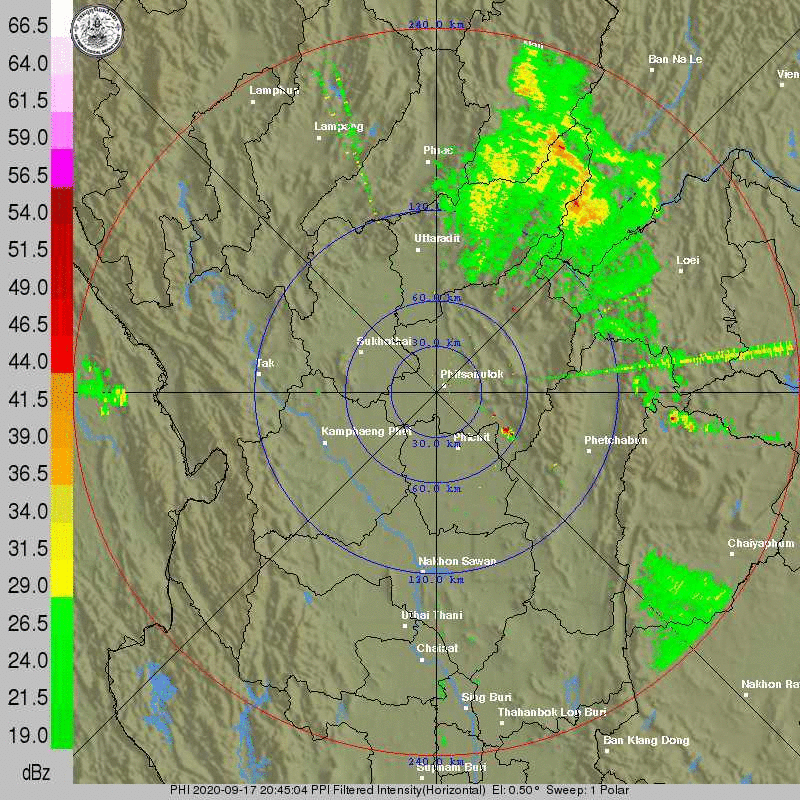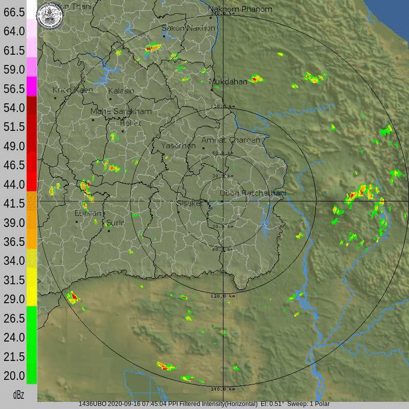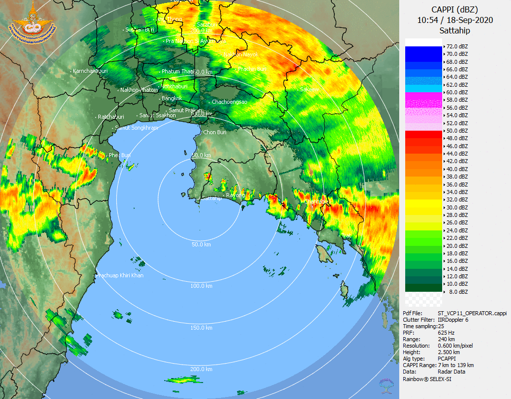 ภาพจากเรดาร์ตรวจวัดปริมาณฝนของกรมอุตุนิยมวิทยา และกรมฝนหลวงและการบินเกษตร ได้แก่ เรดาร์สกลนคร อุบลราชธานี ขอนแก่น พิษณุโลก สัตหีบ แสดงให้เห็นว่ากลุ่มฝนที่เกิดจากอิทธิพลของพายุโซนร้อน “โนอึล” (NOUL) เริ่มเพิ่มขึ้นอย่างเห็นได้ชัดในบริเวณภาคตะวันออกเฉียงเหนือ ตั้งแต่วันที่ 17 กันยายน 2563 ซึ่งขณะนั้นพายุยังไม่ได้เคลื่อนเข้าสู่ประเทศไทย หลังจากนั้น