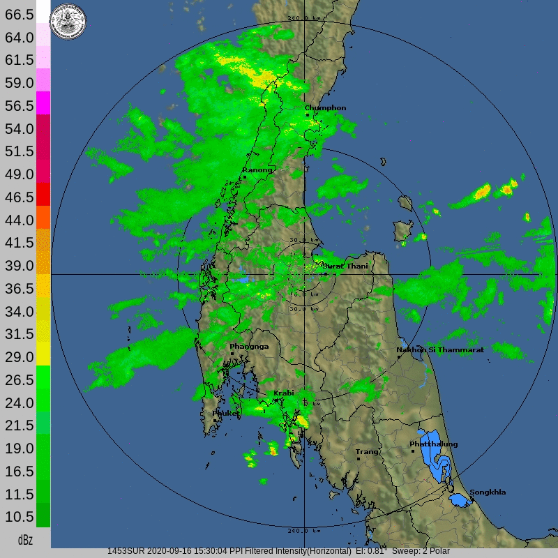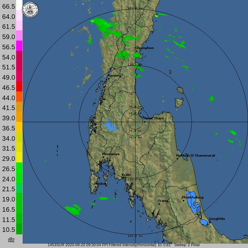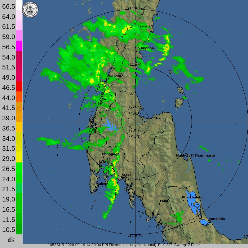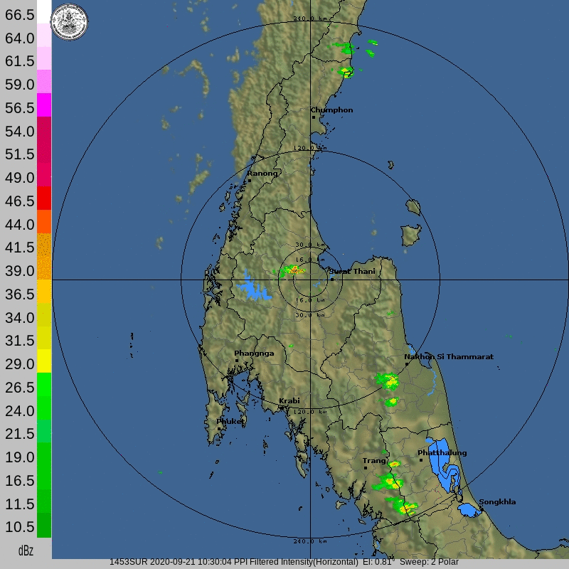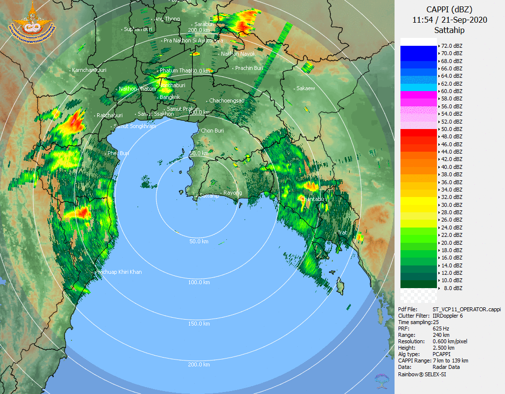 ภาคตะวันออกเฉียงเหนือและภาคกลางต่อเนื่องไปอีกในช่วงวันที่ 20-21 กันยายน 2563 นอกจากนี้ ภาพจากเรดาร์สุราษฎร์ธานียังแสดงให้เห็นว่าอิทธิพลของพายุที่ส่งผลทำให้มรสุมตะวันตกเฉียงใต้มีกำลังแรงขึ้น ได้ส่งผลให้บริเวณภาคใต้มีฝนเพิ่มมากขึ้นด้วยเช่นกัน