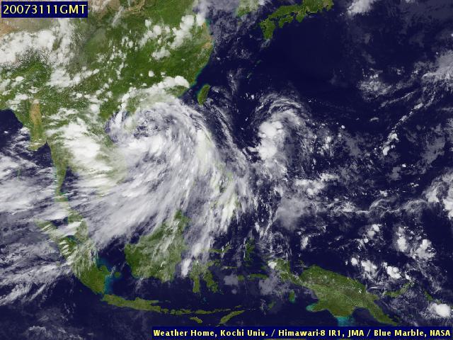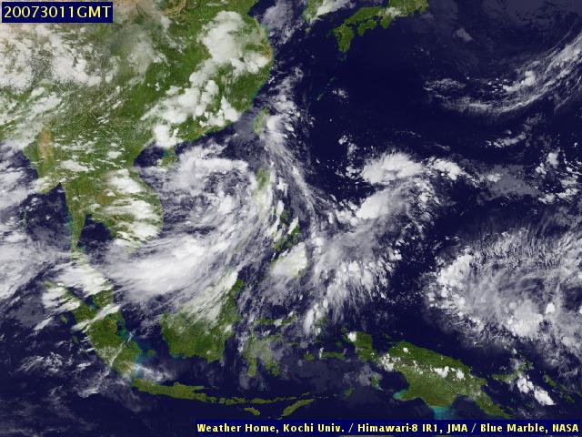 ข้อมูลจากภาพถ่ายดาวเทียม Himawari-8 แสดงให้เห็นว่าอิทธิพลจากพายุโซนร้อน "ซินลากู" (SINLAKU) ส่งผลทำให้เริ่มมีกลุ่มเมฆปกคลุมหนาแน่นบริเวณตอนบนของประเทศ โดยเฉพาะภาคเหนือ ภาค