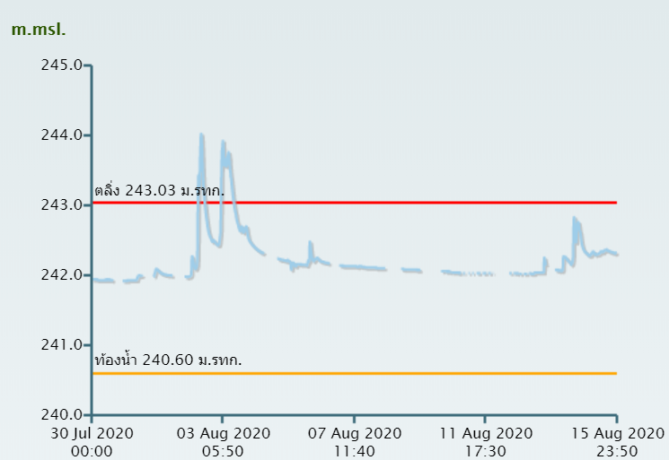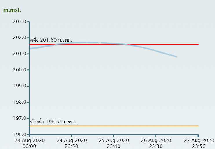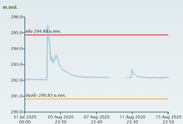 อิทธิพลจากพายุโซนร้อน “ซินลากู” (SINLAKU) ทำให้เกิดฝนตกหนักถึงหนักมากบริเวณตอนบนของภาคตะวันออกเฉียงเหนือและภาคเหนือ ในช่วงต้นเดือนสิงหาคม 2563 ส่งผลทำให้ระดับน้ำในแม่น้ำสายหลักหลายสายเพิ่มสูงขึ้นจนล้นตลิ่งเข้าท่วมในหลายพื้นที่ ซึ่งสถานีโทรมาตรตรวจวัดระดับน้ำของสถาบันสารสนเทศทรัพยากรน้ำ ได้