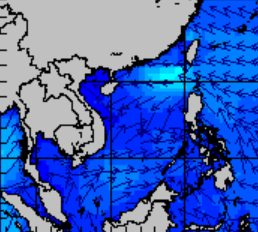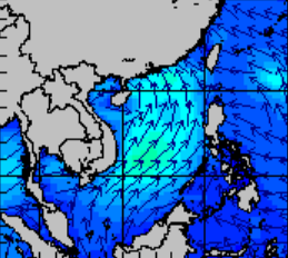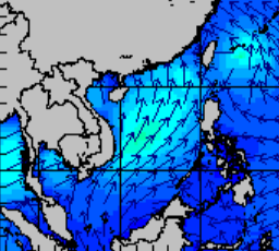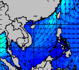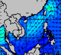 แผนภาพแสดงความสูงของคลื่นและทิศทางของคลื่นแสดงให้เห็นว่า อิทธิพลของพายุโซนร้อน "ซินลากู" (SINLAKU) ส่งผลทำให้ความสูงคลื่นทะเลบริเวณทะเลจีนใต้ตอนลนเพิ่มขึ้นเป็น 1-2 เมตร ในช่วงที่พายุเริ่มก่อตัวในวันที่ 31 กรกฎาคม 2563 ซึ่งในเวลา