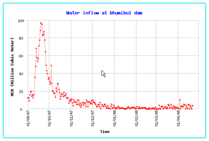 ![]() ปริมาณน้ำไหลเข้าเขื่อนภูมิพล |