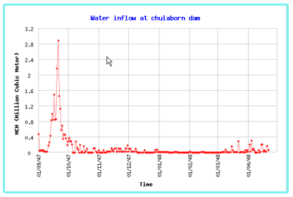 ![]() ปริมาณน้ำไหลเข้าเขื่อนจุฬากรณ์ |