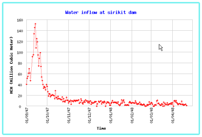![]() ปริมาณน้ำไหลเข้าเขื่อนสิริกิติ์ |